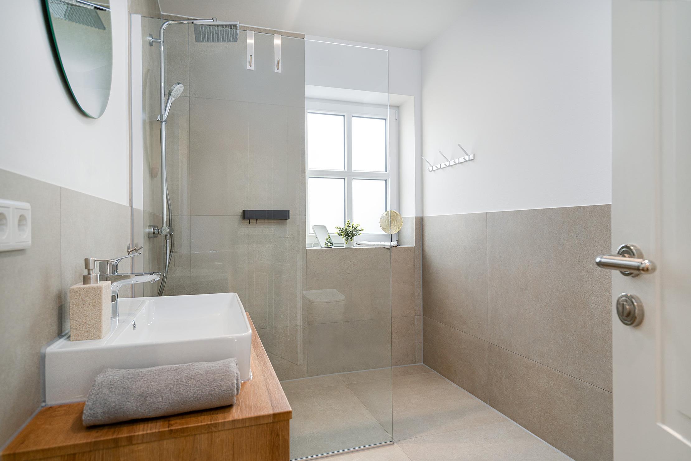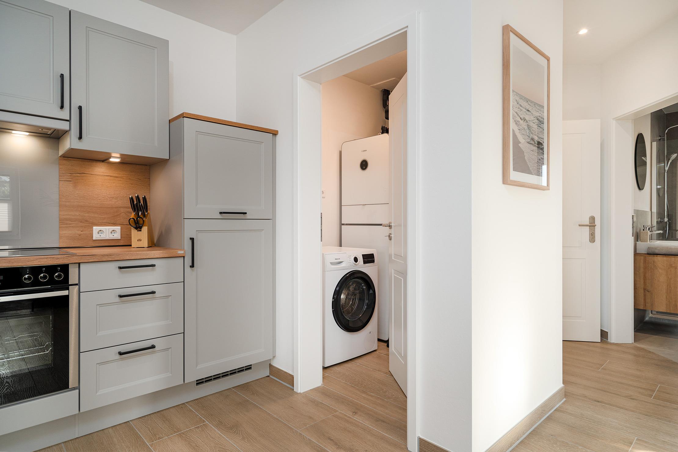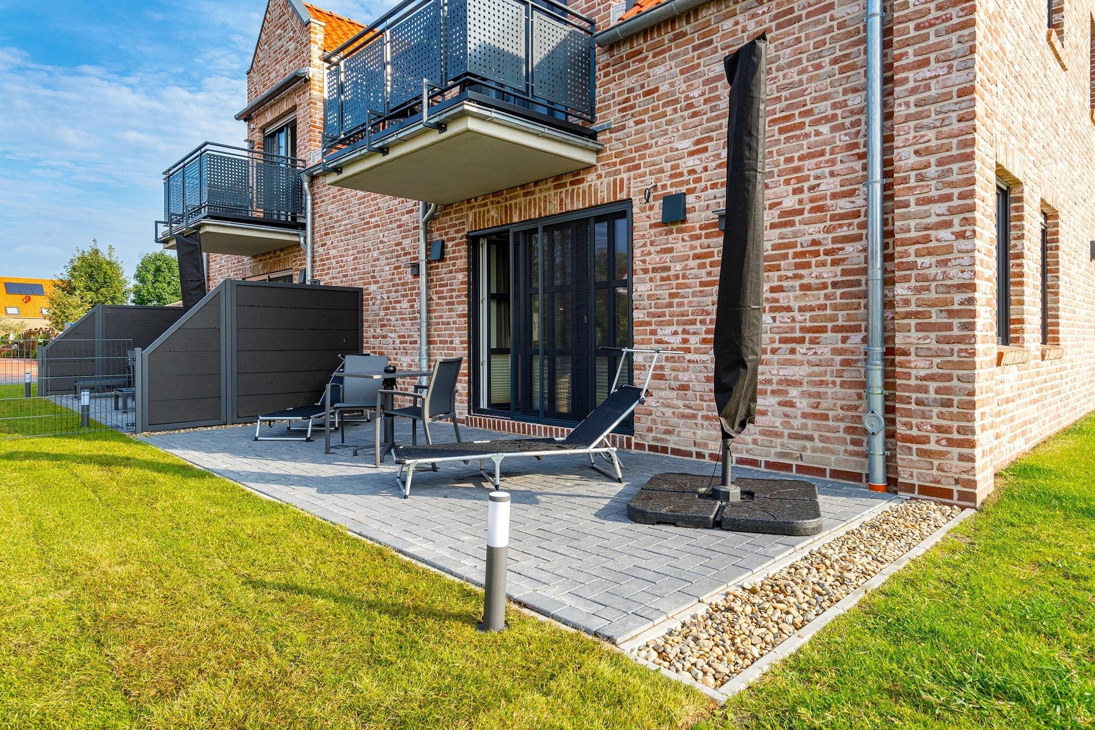 Diese gemütliche 60qm große Wohnung "Vista 9" im Erdgeschoss bietet alles, was Sie für einen erholsamen Urlaub benötigen. Sie verfügt über ein einladendes Schlafzimmer mit einem komfortablen Boxspringbett, das für erholsamen Schlaf sorgt und ein helles Tageslichtbad mit ebenerdiger Dusche. Im offenen und großzügig gestalteten Wohn-Ess-Bereich finden Sie eine hochwertig ausgestattete Einbauküche sowie eine gemütliche Sofaecke zum Entspannen. Der große, voll eingezäunte Garten bietet viel Platz zum Entspannen und Spielen – ideal für Gäste, die mit Hund anreisen. Auf der Terrasse, die mit Gartenmöbeln und bequemen Sonnenliegen ausgestattet ist, können Sie sonnige Stunden im Freien genießen. Selbstverständlich verfügt die Wohnung über einen reservierten Parkplatz sowie einen Abstellraum für Fahrräder.