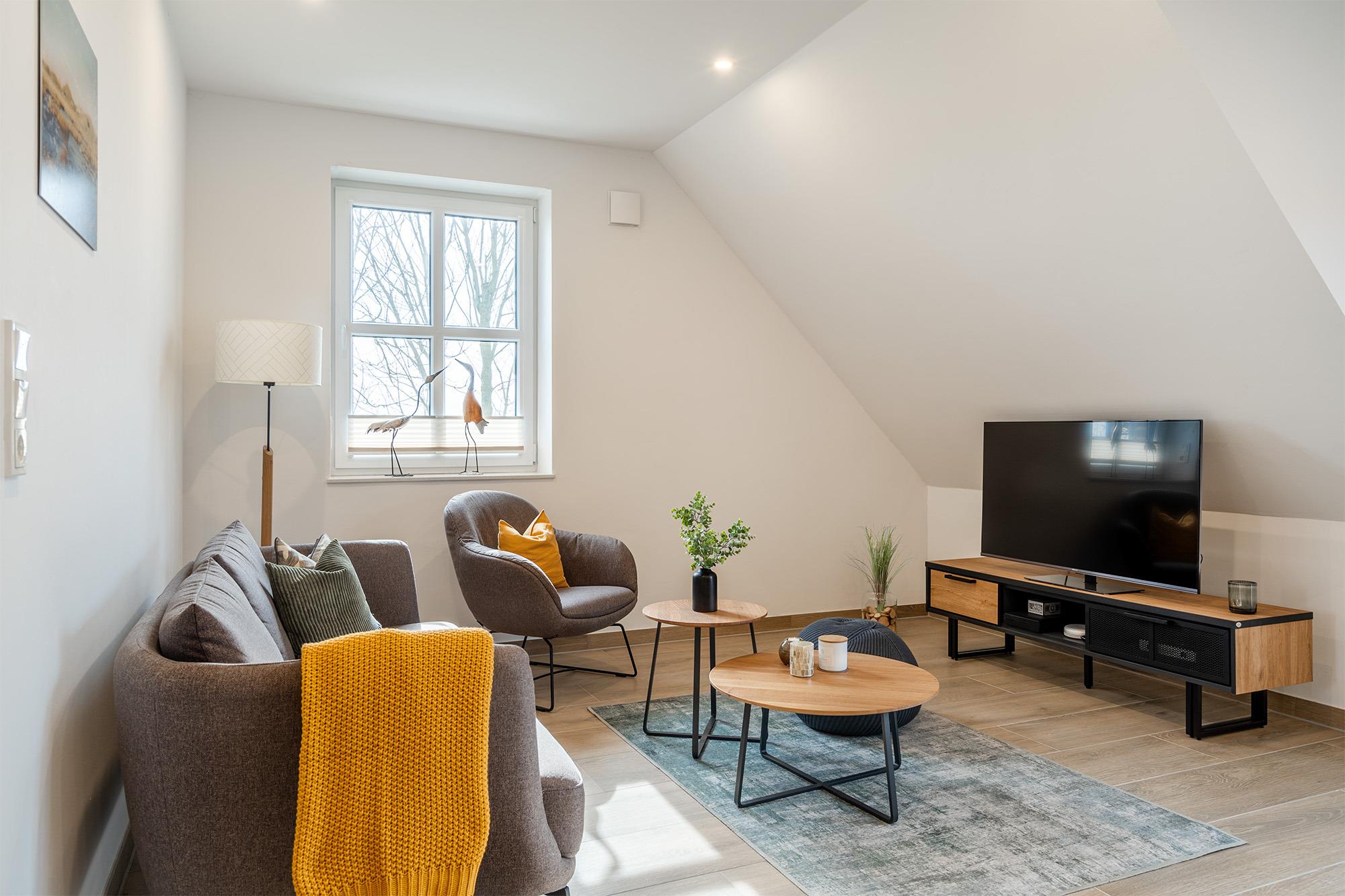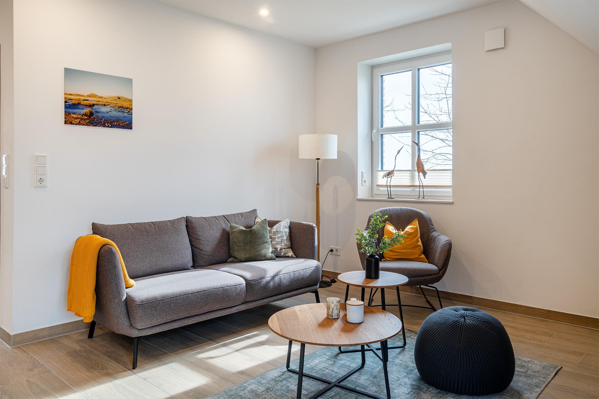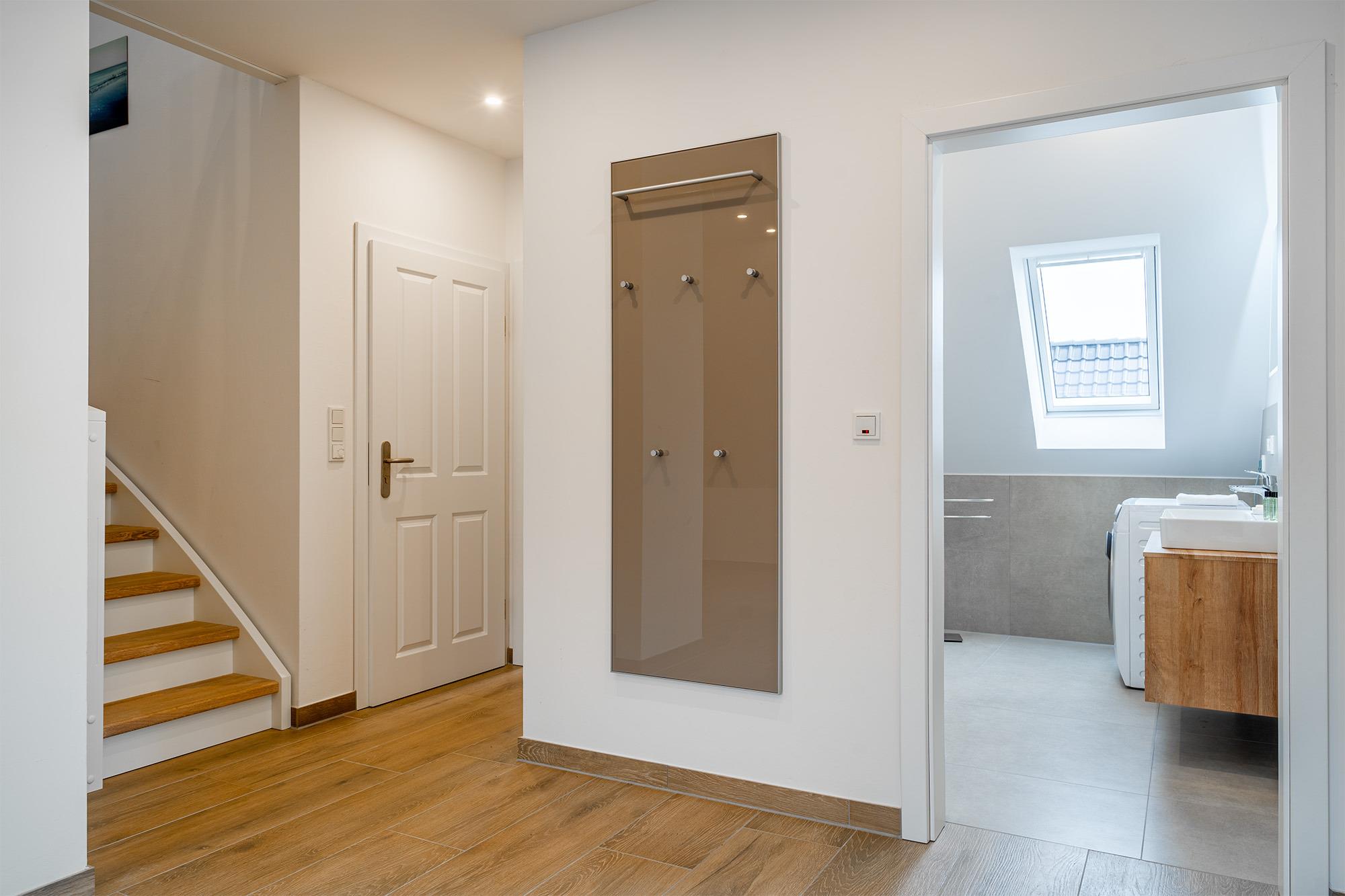 'Watt'n Traum' - das werden Sie sicher auch denken, wenn Sie unsere neu erbaute Ferienwohnung im Obergeschoss beziehen! Nicht nur der lichtdurchflutete Wohnraum mit hochwertig ausgestatteter Küche und Essbereich wird Ihnen gefallen. Neben dem geräumigen Schlafzimmer mit bequemem Boxspringbett verfügt die Wohnung außerdem über einen ausgebauten Spitzboden. Dieser ist als Galerie gestaltet und bietet neben zwei weiteren Schlafmöglichkeiten außerdem eine gemütliche Sitzecke, in die man sich mit einem guten Buch zurück ziehen kann. Komfortabel sind vor allem die zwei Tageslichtbäder, zum Beispiel für den gemeinsamen Urlaub mit Freunden. Ein besonderes Highlight dieser Wohnung ist der große Gemeinschaftsgarten, den Sie - abgesehen von dem Sonnenbalkon Ihrer Wohnung - ebenfalls nutzen können. Neben einem PKW Parkplatz bietet diese Wohnung selbstverständlich auch eine Abstellmöglichkeit für Fahrräder.