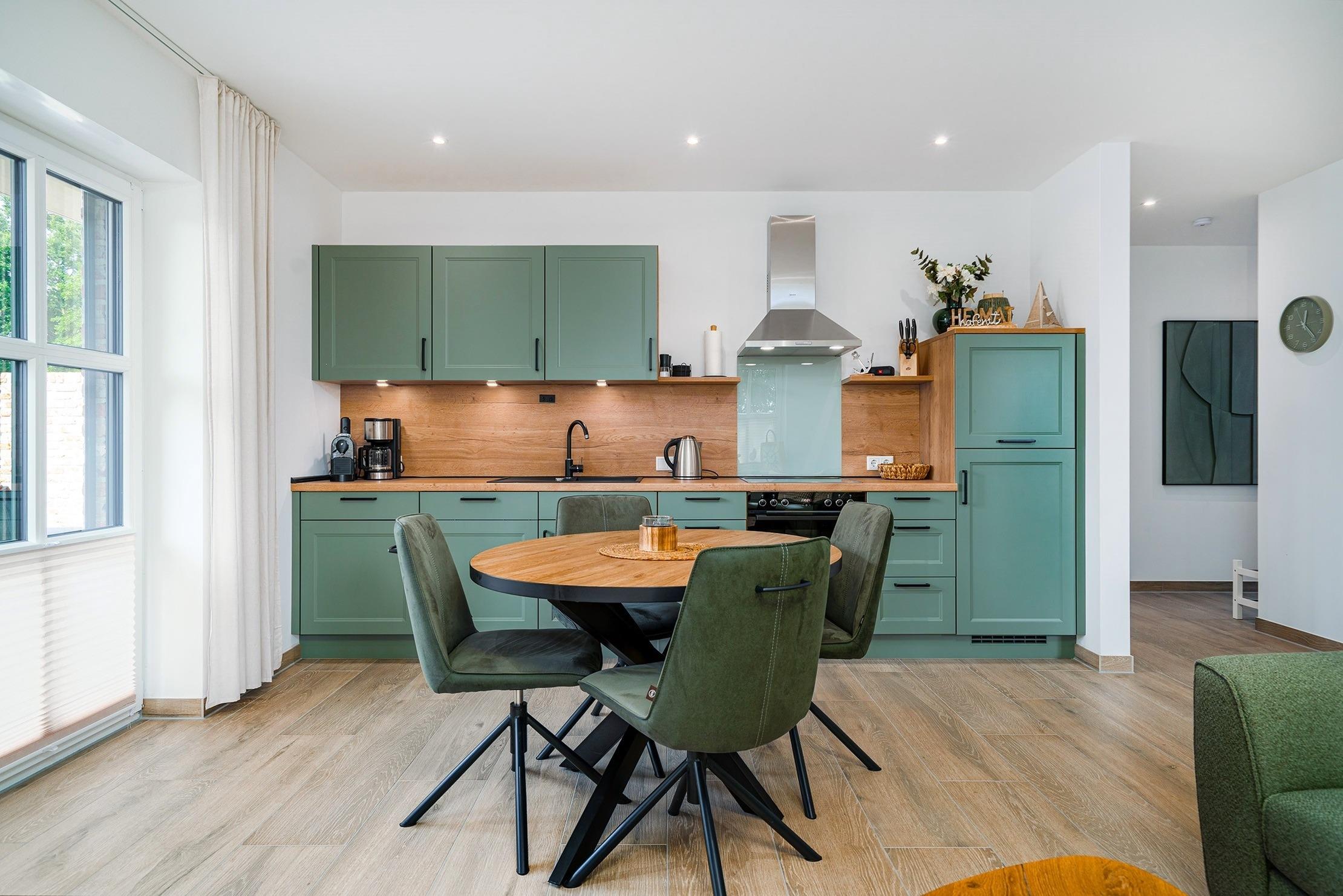 In unserer Erdgeschoss-Wohnung „Windhuus 2“ mit rund 55qm Wohnfläche erwartet Sie ein modernes Feriendomizil für entspannte Tage an der Nordsee. Die mittlere von drei Erdgeschosswohnungen bietet einen gemütlichen Wohn- und Essbereich mit voll ausgestatteter Küchenzeile und gemütlicher Sitzecke. Das komfortable Schlafzimmer mit Doppelbett sorgt für erholsame Nächte. Ein weiteres Schlafzimmer mit einem Einzelbett ist besonders bei Kindern beliebt. Das moderne Badezimmer ist mit einer ebenerdigen Dusche ausgestattet. Vom Wohnbereich aus gelangen Sie direkt auf Ihre private Terrasse mit angrenzendem Garten – ideal, um die frische Nordseeluft zu genießen. Die Lage ist zentral und dennoch ruhig: Der malerische Hafen von Greetsiel, charmante Geschäfte und einladende Restaurants sind bequem zu Fuß erreichbar.