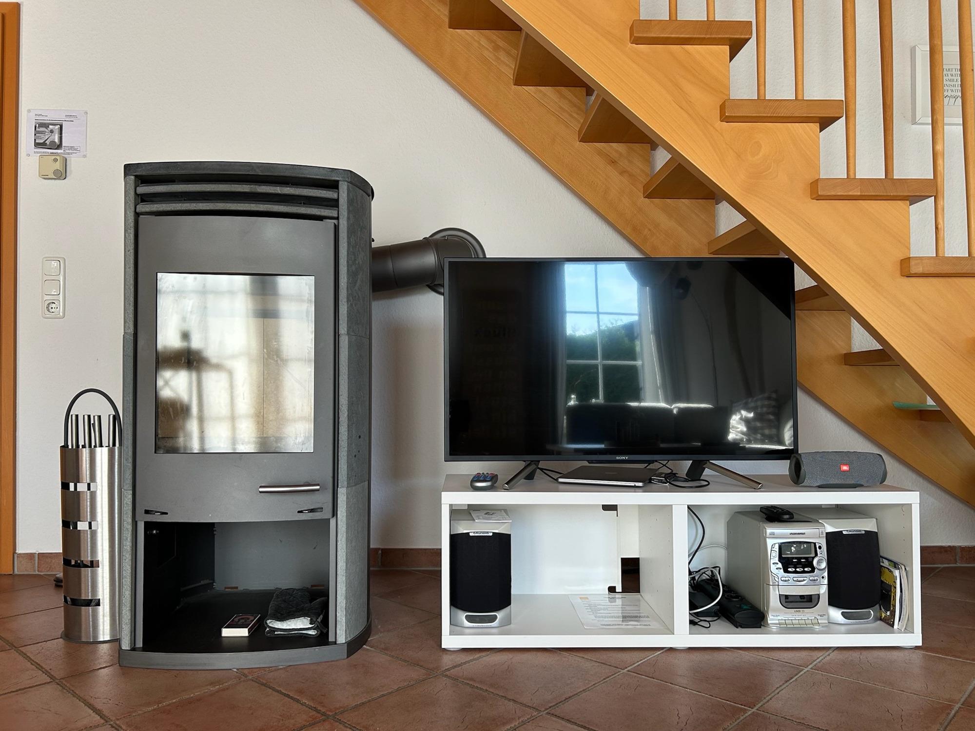 3 Schlafräume: 1 Schlafzimmer im Erdgeschoß mit Doppelbett (2 x 90 x 200cm), 1 Schlafzimmer im Obergeschoß mit Doppelbett (90 x 200cm) und 1 Schlafzimmer im Obergeschoß mit 2 Einzelbetten (90 x 200cm) eingerichtet mit Kiefer-Naturholzmöbeln, Allergiker-Betten, alle mit verstellbarem Lattenrost. Wohnbereich mit Deichblick! Kamin, Rundsitzecke, 43"Sony FullHD LED-TV, Sat-Receiver, CD-Radio, ein DSL WLAN-Gastzugang ist vorhanden, Essbereich für 6 Personen mit großem Tisch und Einbauküche mit Herd und Cerankochfeld, Dunstabzugshaube, Kühlschrank mit Gefrierfach, 45er Geschirrspüler, Filterkaffeemaschine, 2 Badezimmer, jeweils mit Dusche und WC sowie zusätzlicher Fußboden-Erwärmung. Das Bad im EG verfügt über Waschmaschine (8kg) und Trockner (7,5kg). Im Abstellraum finden sie u.a. Bügelbrett, Bügeleisen, Wäscheständer, Kinderreisebett und Kinderhochstuhl.