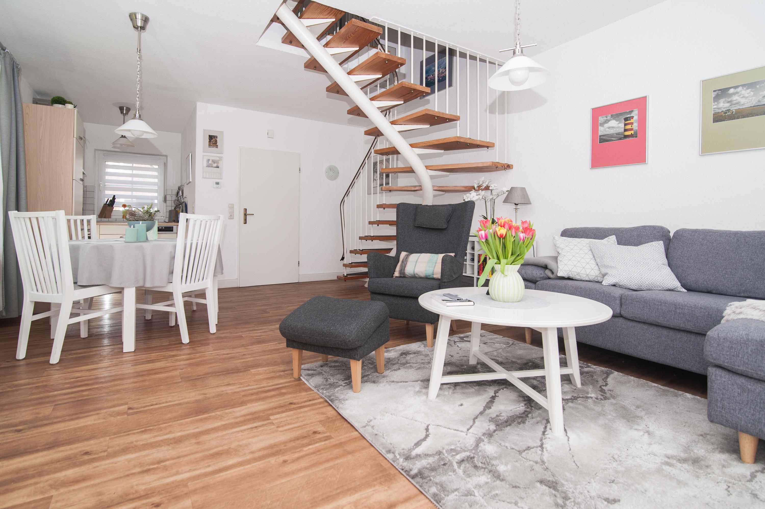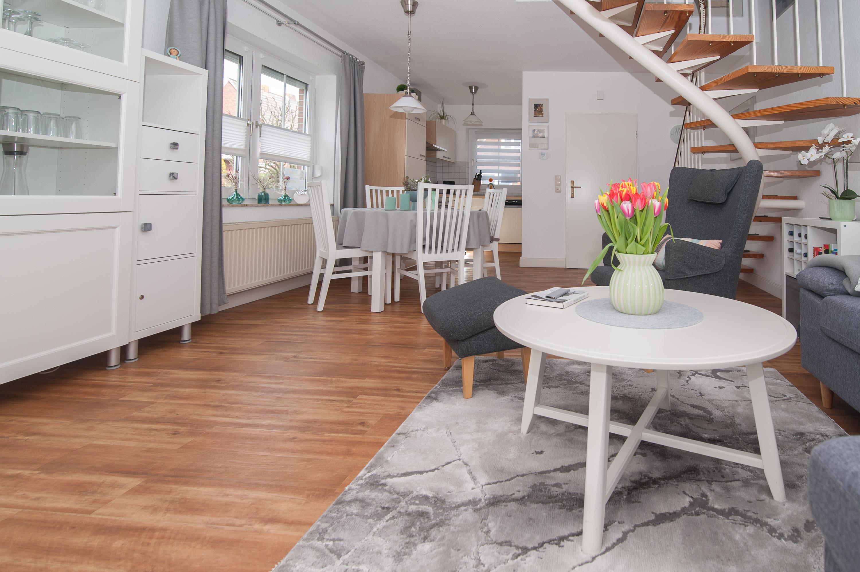 Endreihenhaus (75 qm) für 4 Personen komfortabel und liebevoll eingerichtet, in einer ruhigen Seitenstraße in Deich / Hafennähe, unweit vom "Koppke" - Schwimmbad und Sauna - gelegen. Abstellraum und Waschmaschine, Terrasse mit Gartenmöbeln, Wiese, 1 PKW-Stellplatz am Haus.