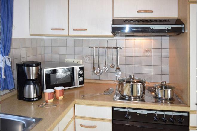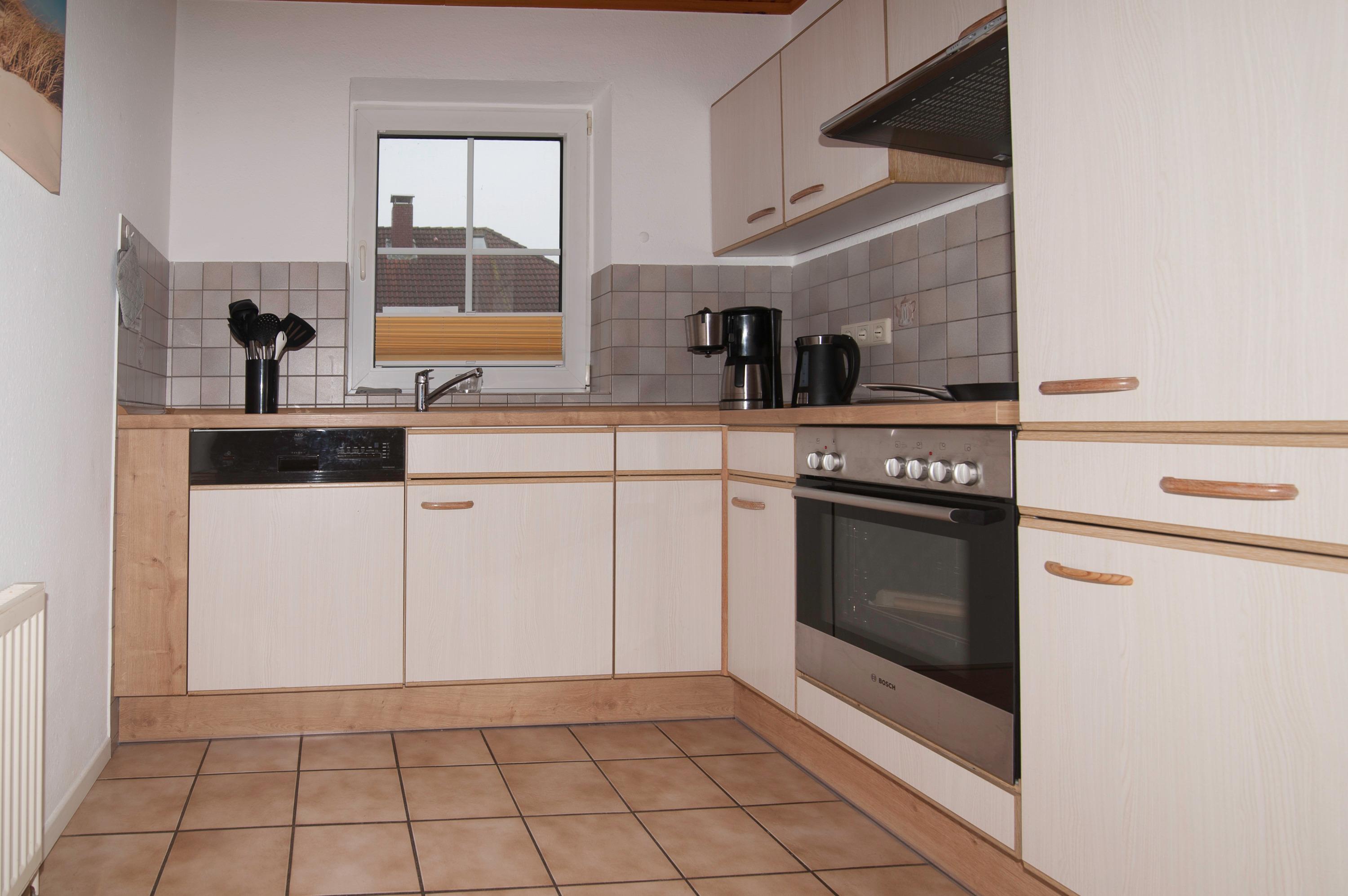 Einbauküche komplett ausgestattet mit: Herd incl. Cerankochfeld, Umlufthaube, Mikrowelle, Kühlschrank mit Gefrierfach, Geschirrspüler, Filterkaffeemaschine, Toaster und vielem mehr. Badezimmer mit Dusche, Waschbecken und WC im Obergeschoß, ebenein 1 Schlafzimmer mit Doppelbett (2 x 90 x 200cm) und ein Schlafzimmer mit zwei Einzelbetten,[nbsp] (90 x 200cm) befinden sich im Obergeschoß, alle Betten im Haus verfügen über verstellbare Lattenroste