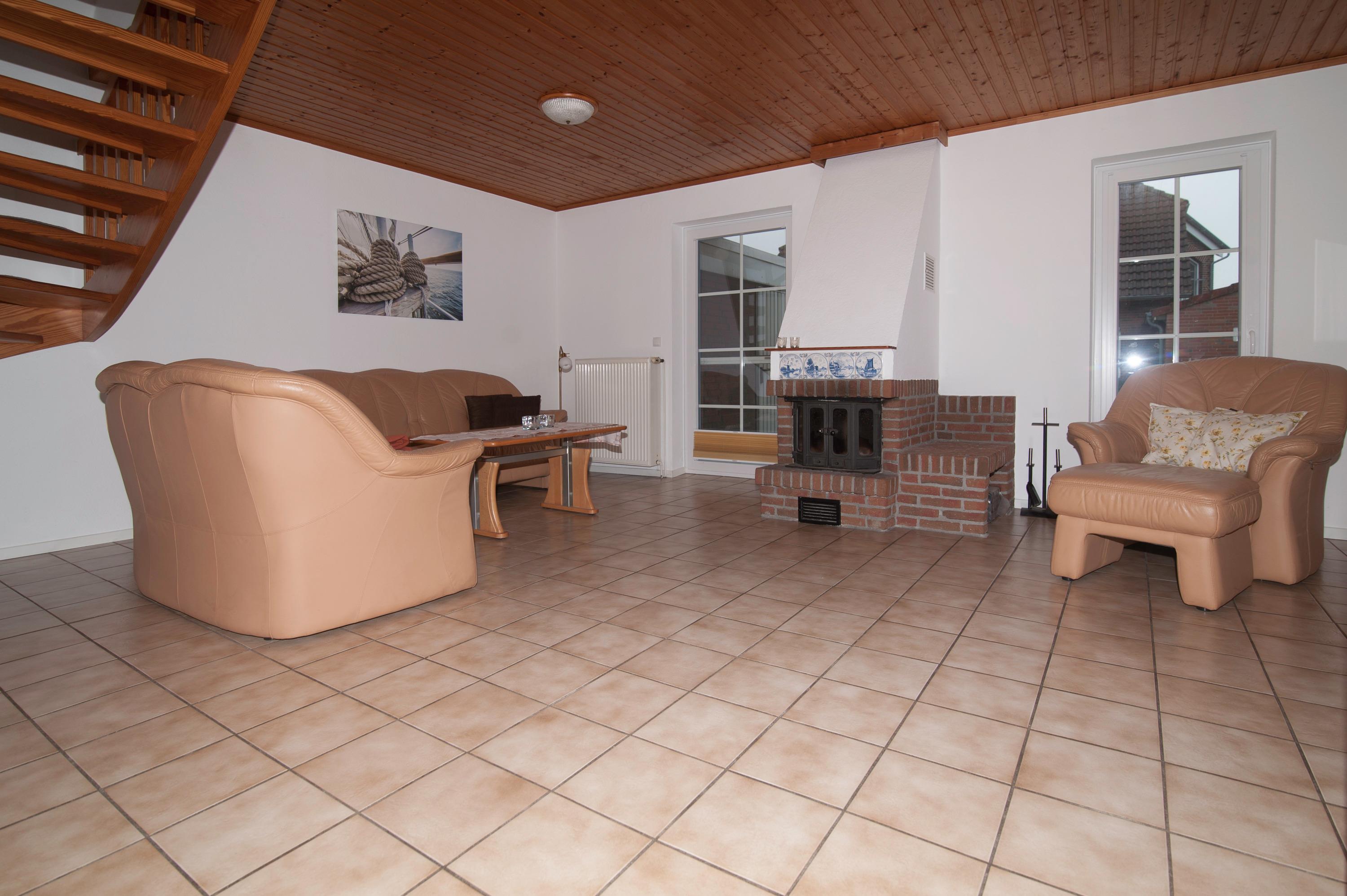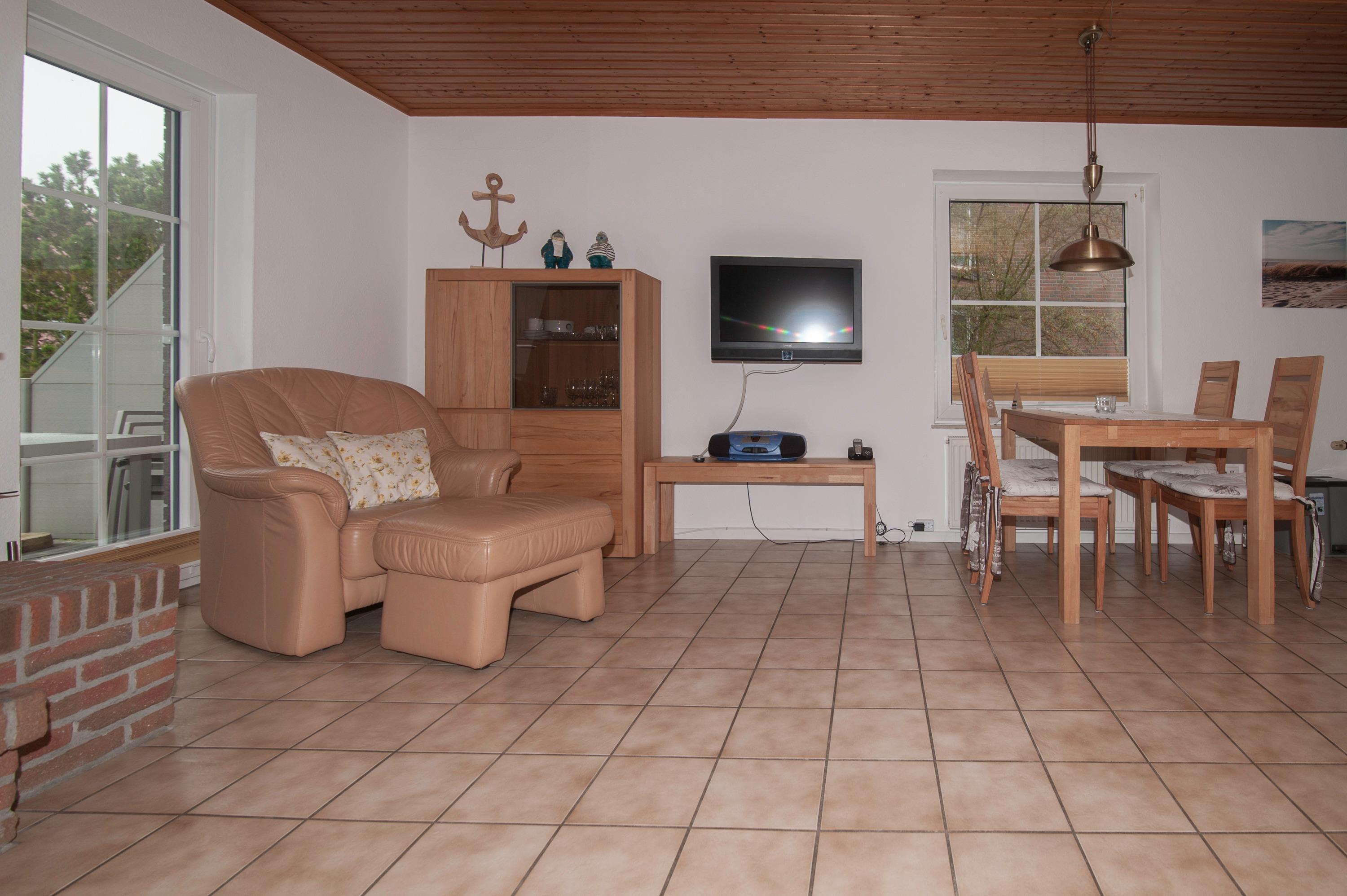 Schöner Wohnraum mit 32"Metz HD LED-TV , Sitzgruppe, Stereoanlage, Kamin, Essplatz für 4 Personen, das Haus verfügt über einen DSL WLAN Gastzugang.