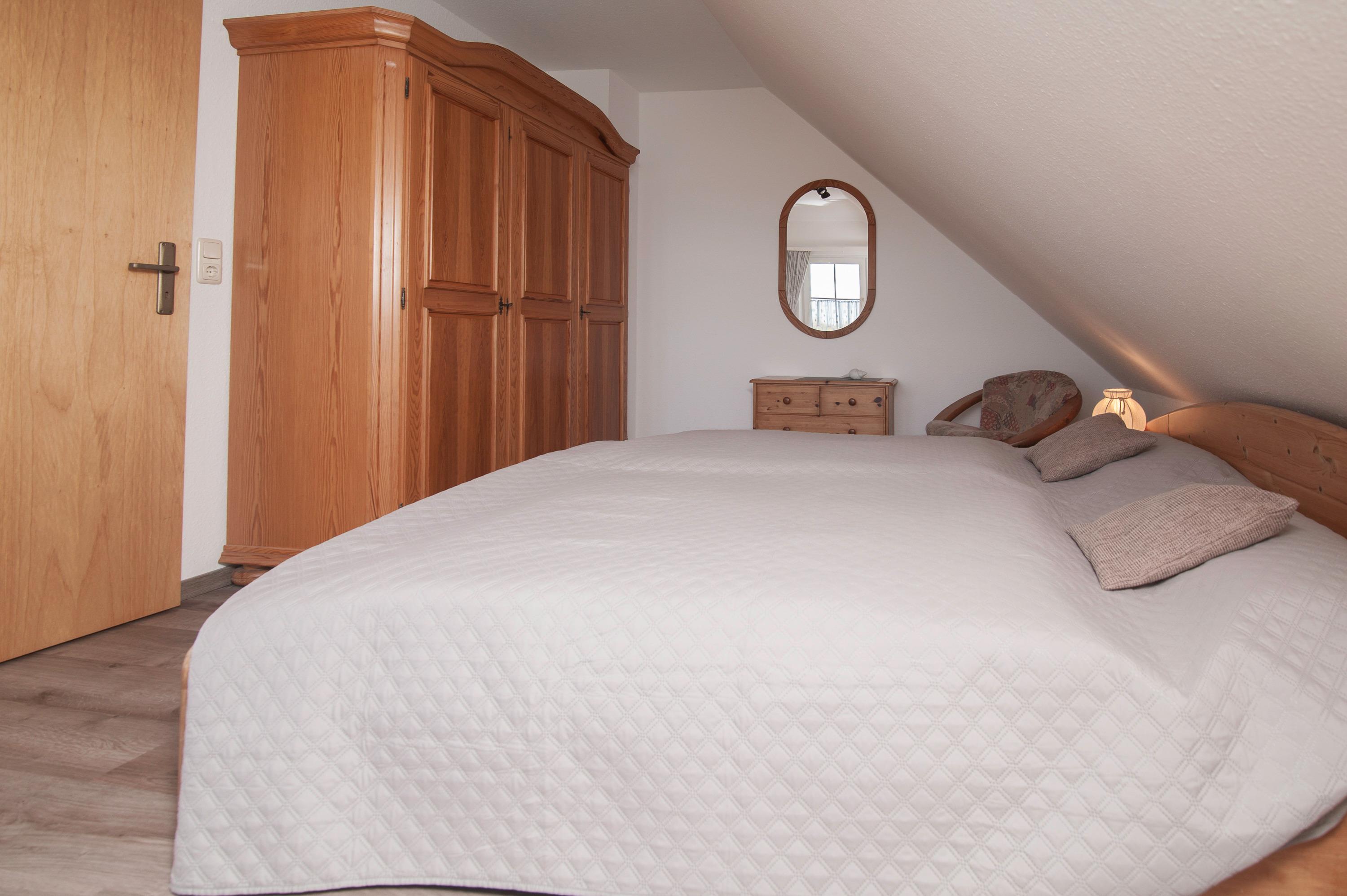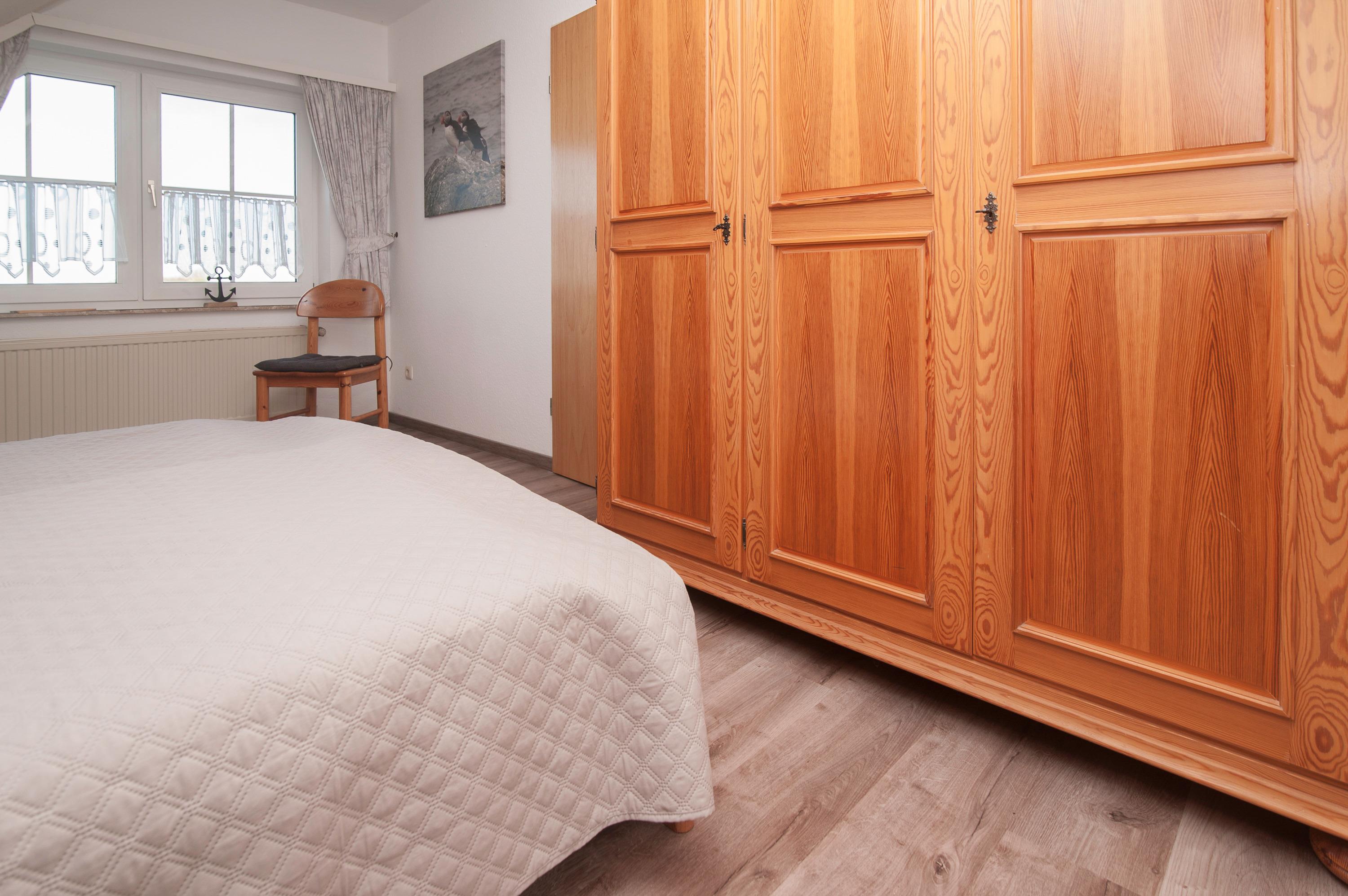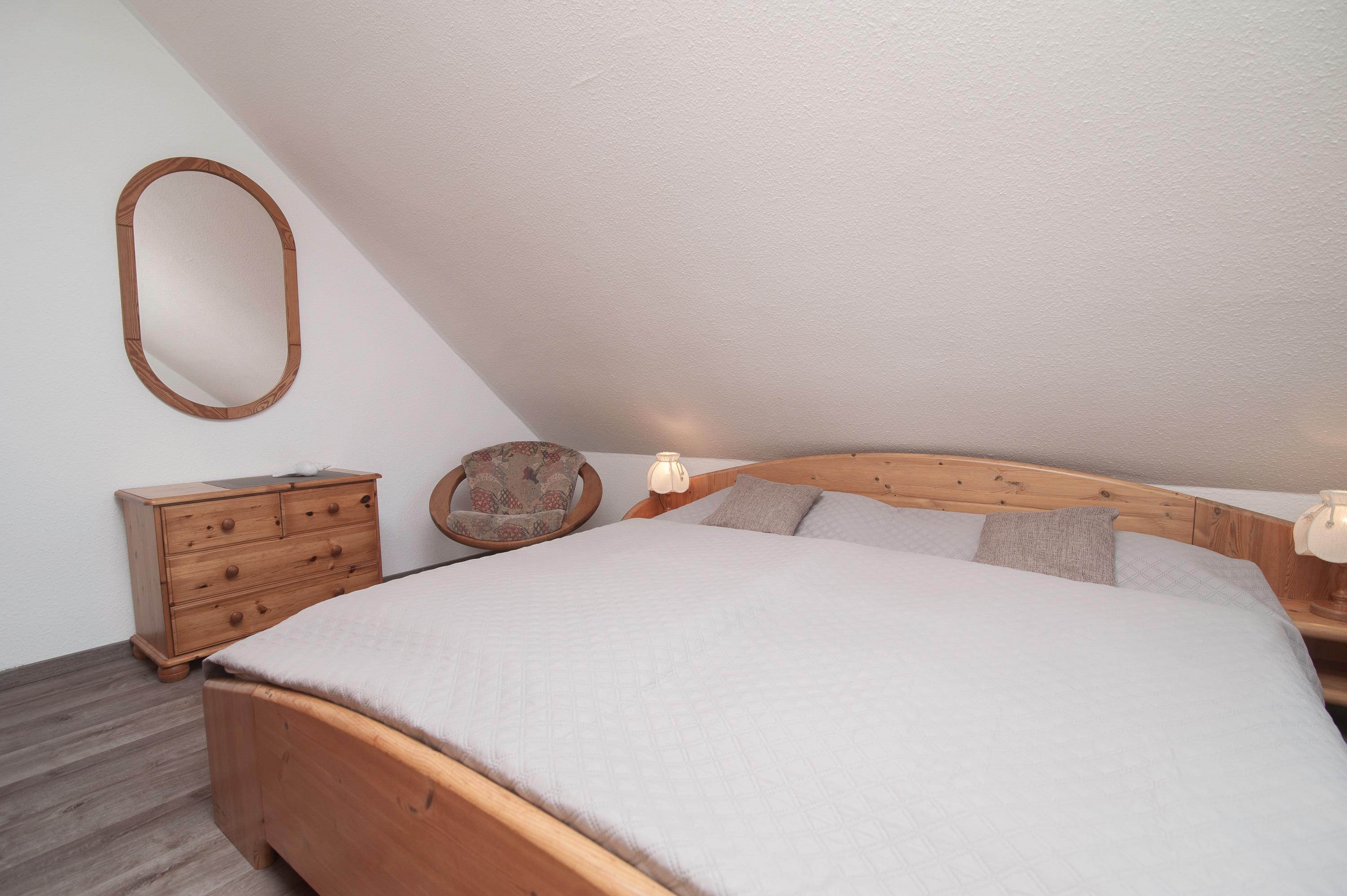 1 Schlafraum mit einem Doppelbett (Matratzengrößen 90 x 200cm), ausgestattet mit einem wohngesunden Bodenbelag von Meister Design.