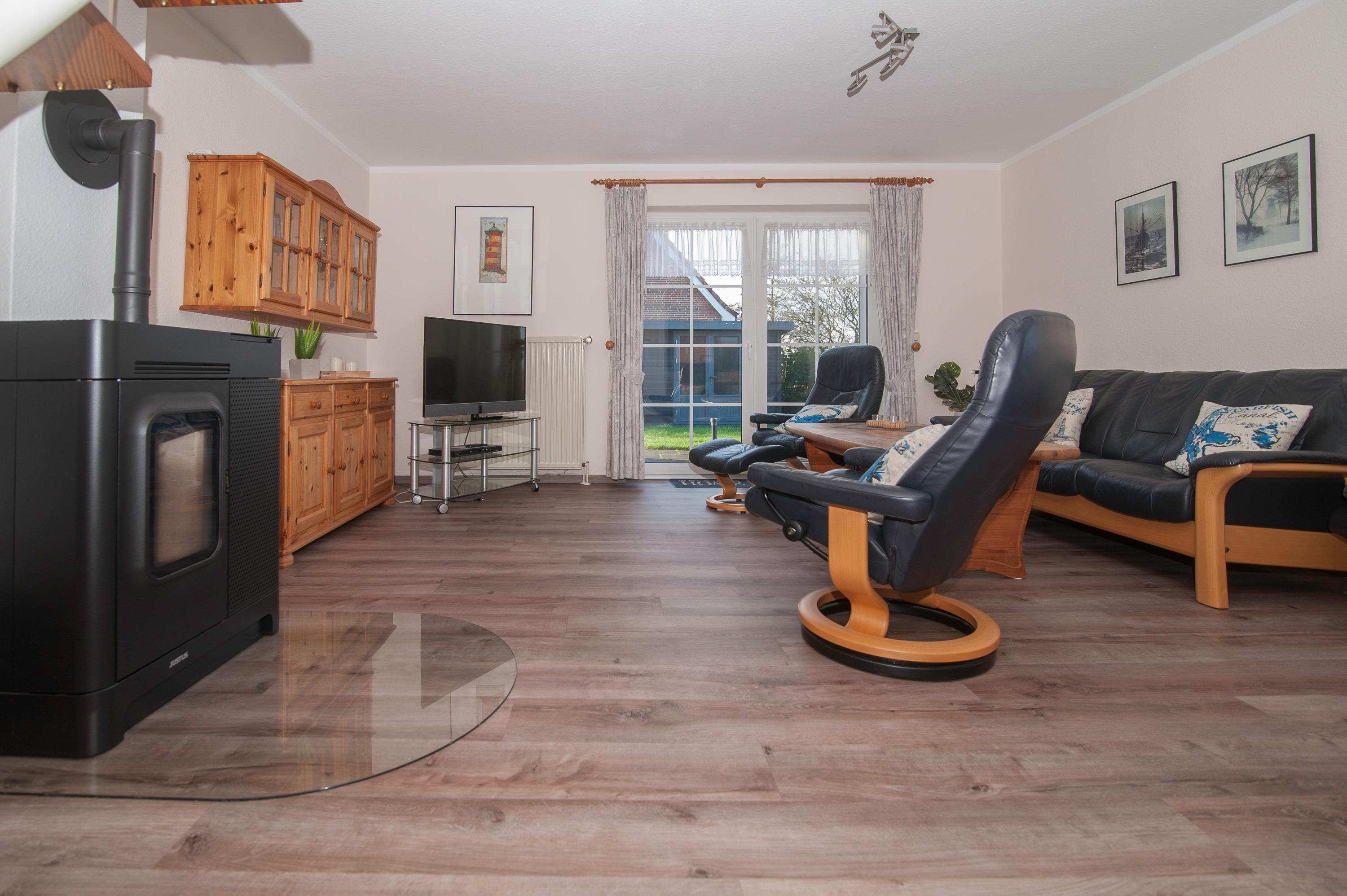 Vielleicht kommt Ihnen schon bald das gemütliche Ferienhaus sehr gelegen. Der schöne Wohnraum mit bequemen Sesseln, Sofa und ein 43" Metz FullHD-TV mit angeschlossenem DVD Spieler, lädt zum Entspannen ein. Ein moderner Pelletofen ( muss vor Abreise durch den Gast gereinigt werden ) erlaubt es Ihnen im Frühjahr, in der Herbst- und Winterzeit und an kühlen Abenden sehr schnell und bequem zusätzlich für wohlige Wärme zu sorgen.