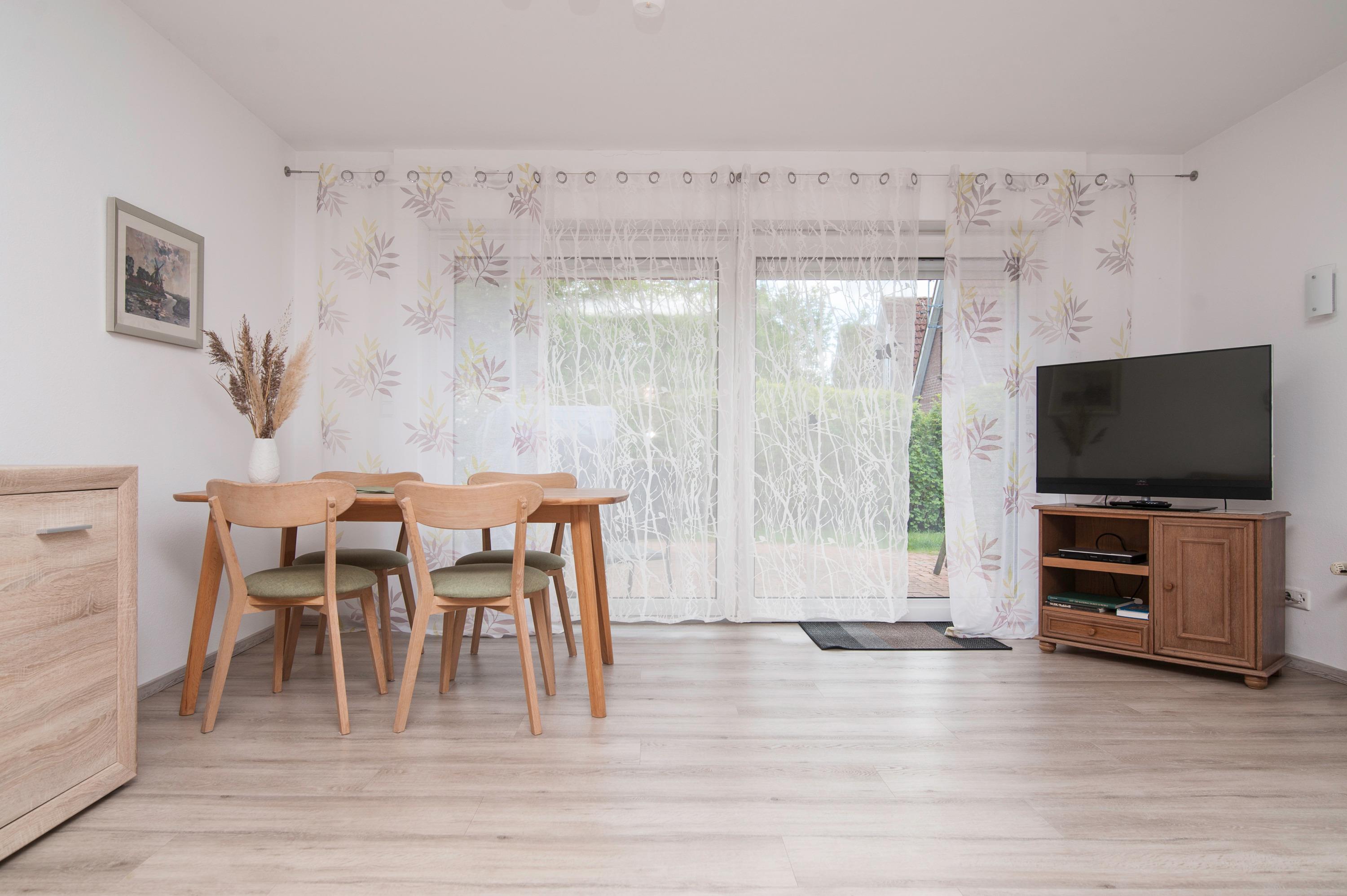 Ein großzügiger Wohn-/Essbereich mit Zugang zur Terrasse, ausgestattet mit hochwertigen Möbeln einem 43"Metz LED-TV, DVD-Player, und einem Essplatz für 4 Personen steht Ihnen zur Verfügung, DSL WLAN-Gastzugang ist vorhanden.