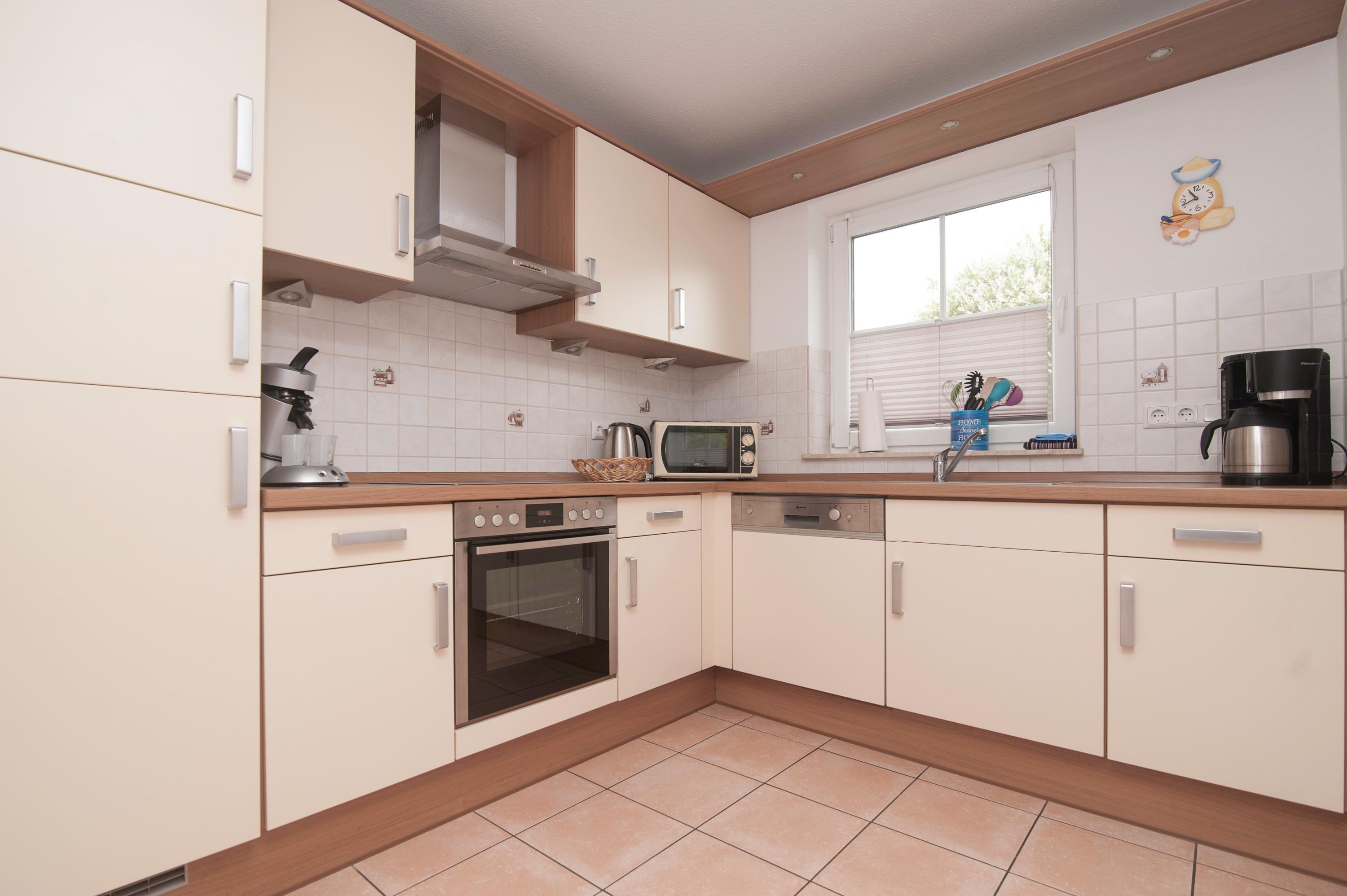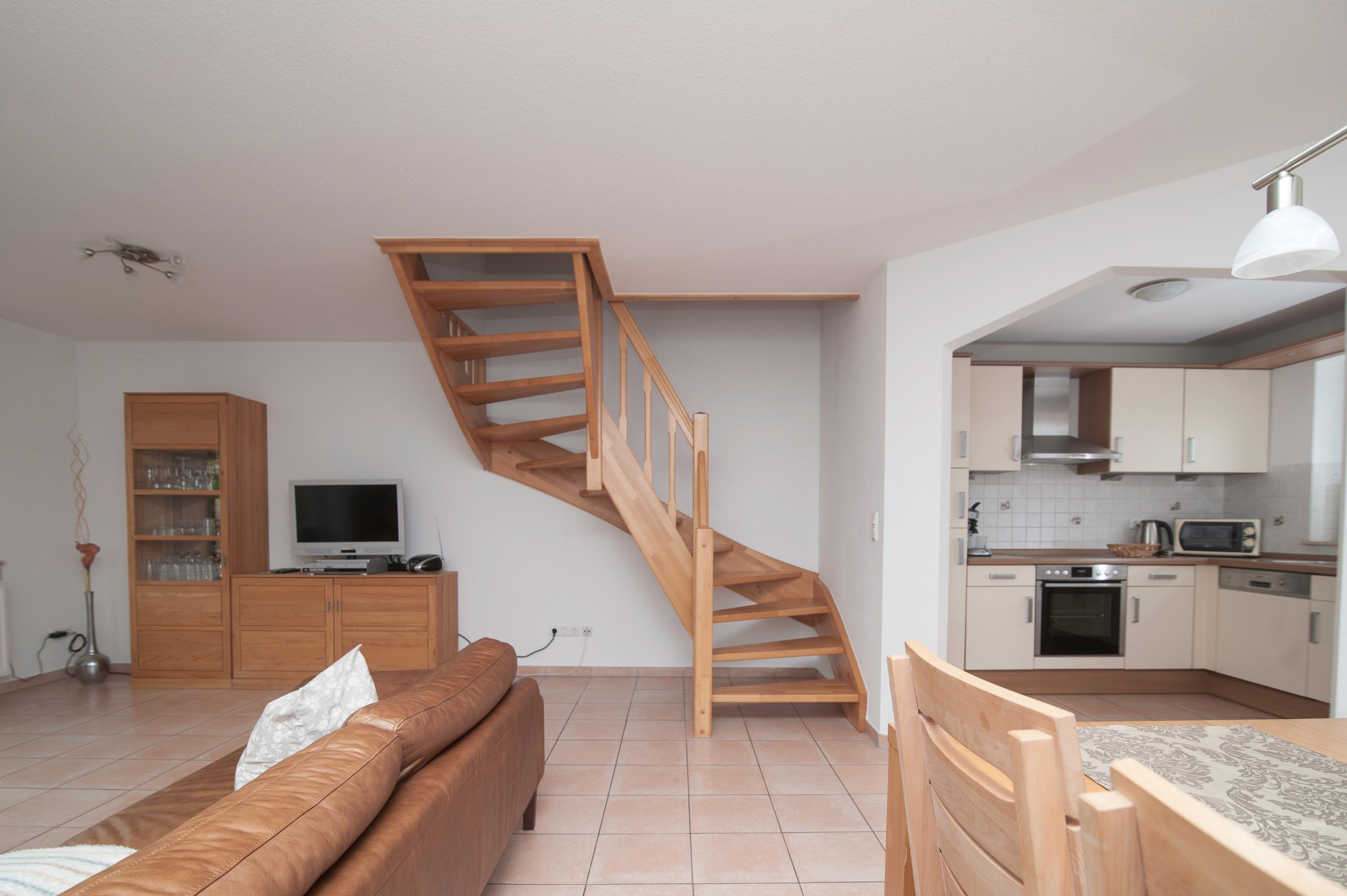 Im Erdgeschoß befindet sich der großzügige Wohn-/Essraum mit einem 32" TechniSat FullHD LED-TV, inkl. separater voll ausgestatteter Küche: Herd mit Cerankochfeld, Mikrowelle, Dunstabzugshaube, Kühlschrank mit Gefrierfach, Geschirrspüler, Filterkaffee und Kaffeepadmaschine, Mixer, Eierkocher, Pürierstab u.v.m. sowie ein Gäste-WC. Ein DSL WLAN-Gastzugang ist vorhanden.