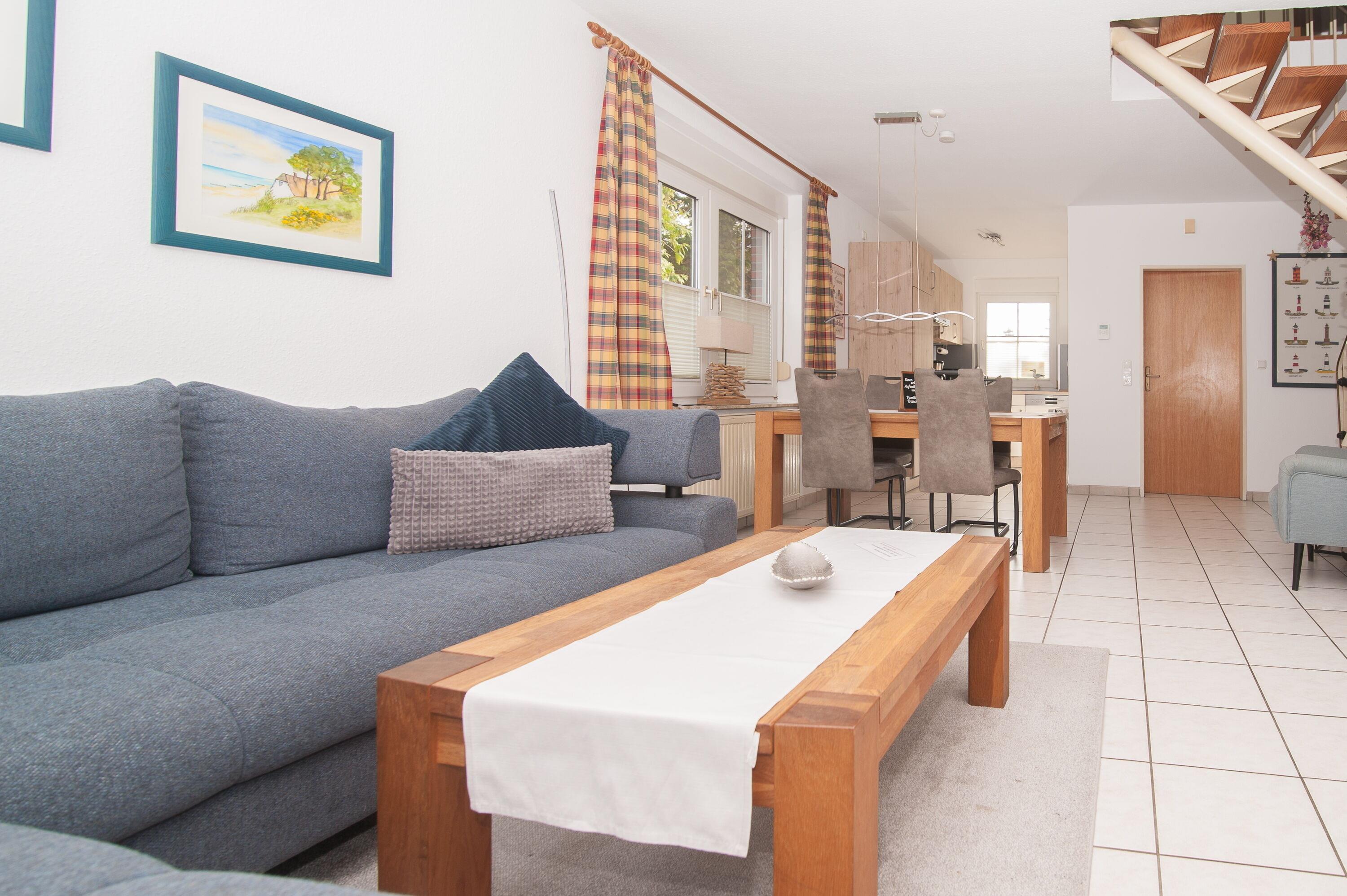 Doppelhaushälfte (75 qm), bis 4 Personen, komfortabel und liebevoll eingerichtet. Deich- und Hafennähe sowie die Nähe zum "Koppke" - Schwimmbad und Sauna -, Terrasse mit Gartenmöbeln und großer, sichtgeschützter Wiese hinter dem Haus. Ein Gartenhaus für Fahrräder steht zur Verfügung.