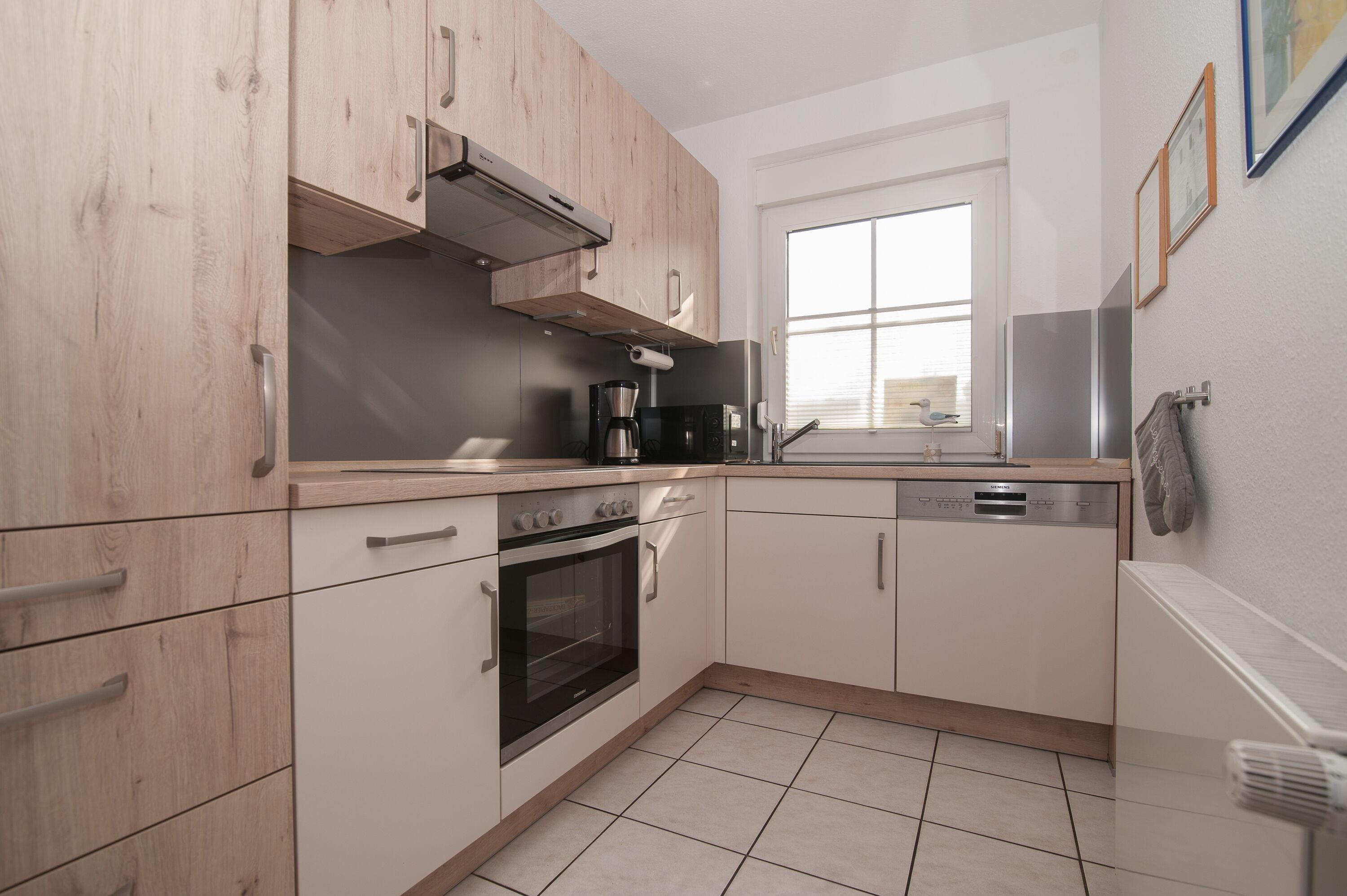 Einbauküche ist komplett ausgestattet, Herd mit Cerankochfeld, Dunstabzug, Mikrowelle, Geschirrspüler, Kühlschrank mit Gefrierfach, Filterkaffeemaschine, Toaster, Heißluftfriteuse und vielem mehr