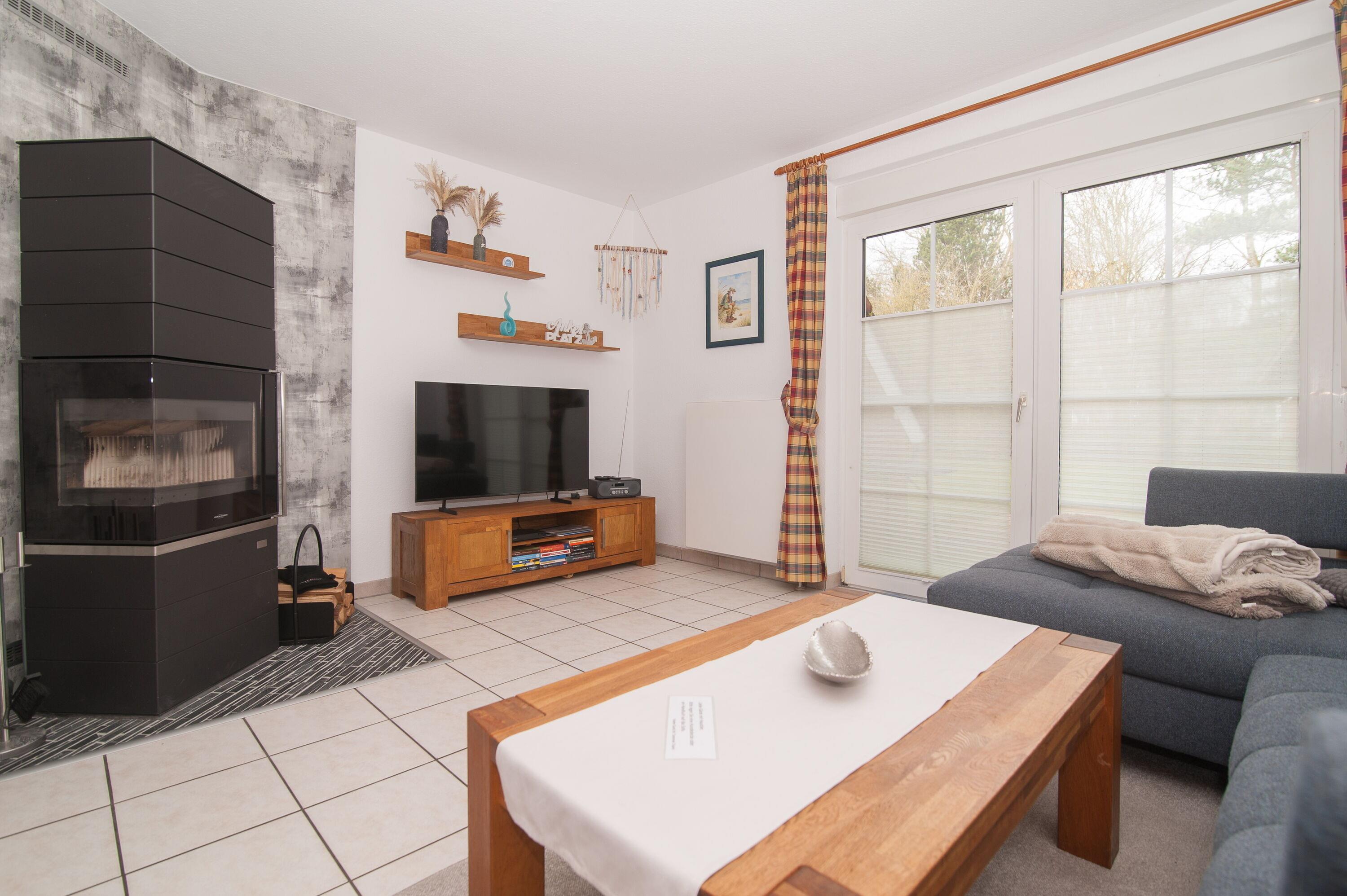 Schöner Wohnraum mit 50"Samsung LED UHD Smart-TV, Polstersitzgruppe, Stereoanlage und der Kaminofen sorgen dafür, dass Sie sich auch im Winter rundum wohlfühlen können. Im offenen Wohnraum bietet der Esstisch platz für 4 Personen. Ein DSL WLAN-Gastzugang ist vorhanden