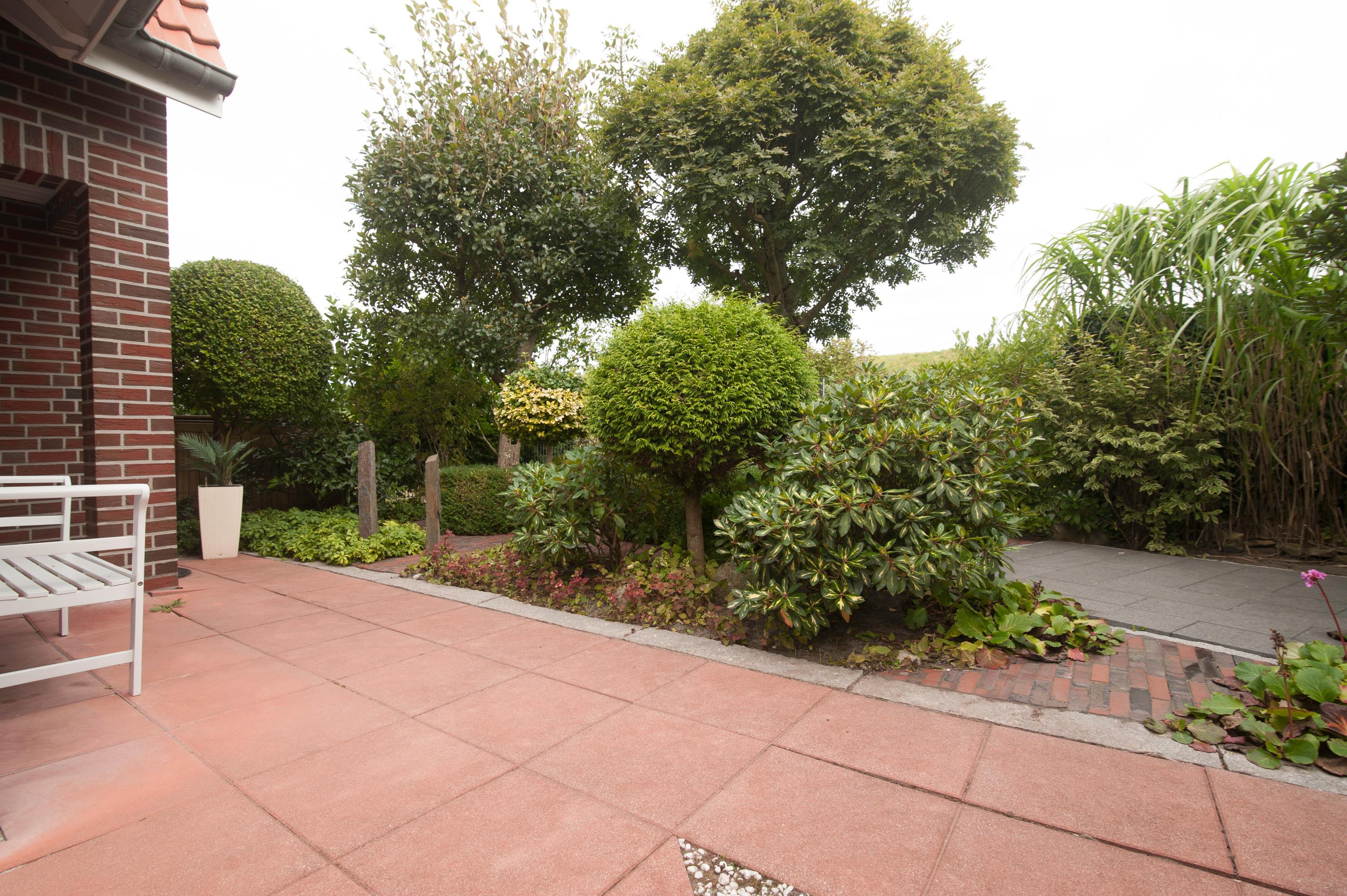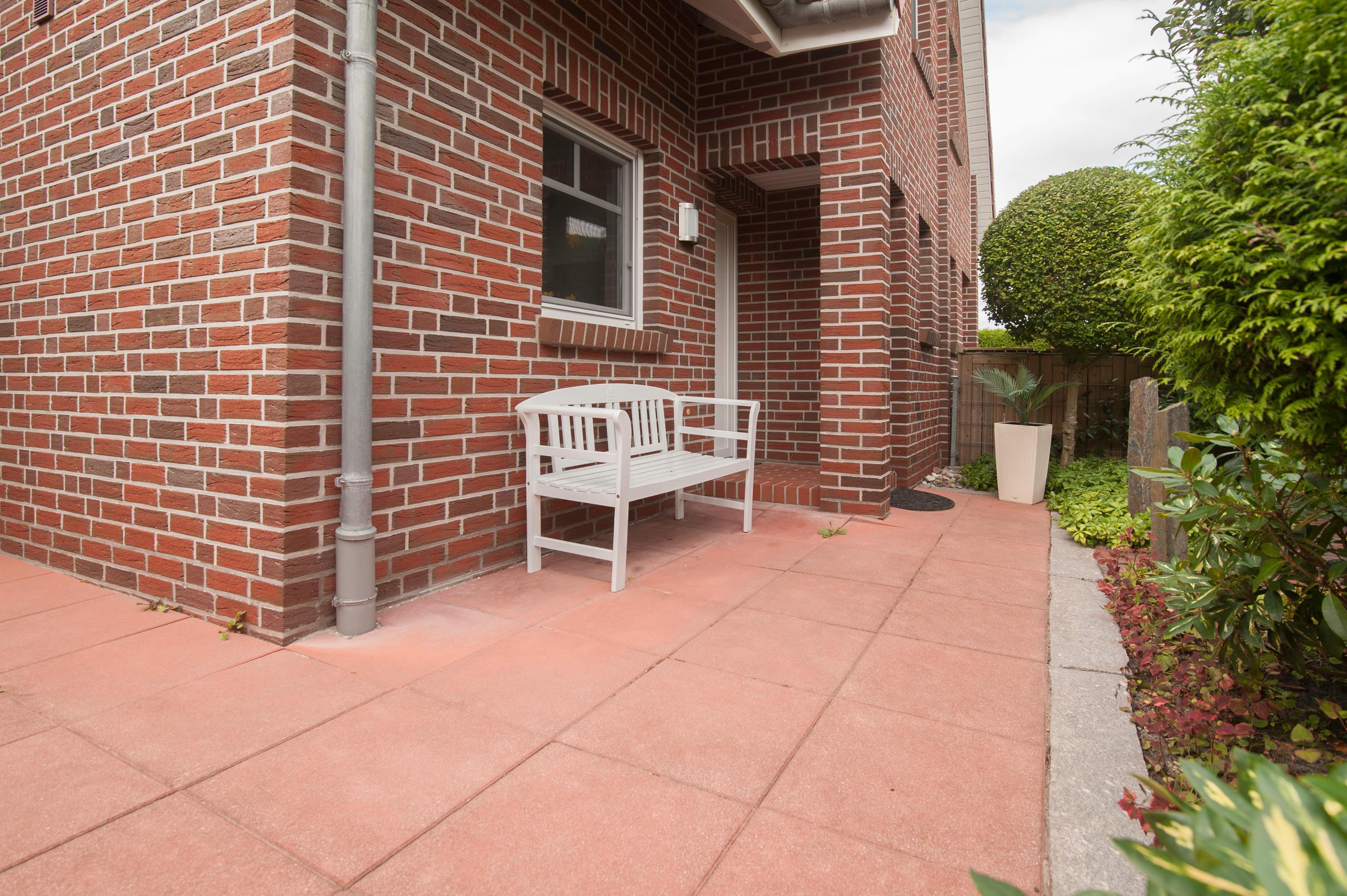 Die Doppelhaushälfte ist rundherum gepflastert, so können Sie sich bei Sonnenschein Ihren Lieblingsplatz zur Entspannung und Erholung aussuchen. Selbstverständlich haben Sie auch eine Terrasse in Südwestlage mit Gartenmöbeln und Abstellraum.