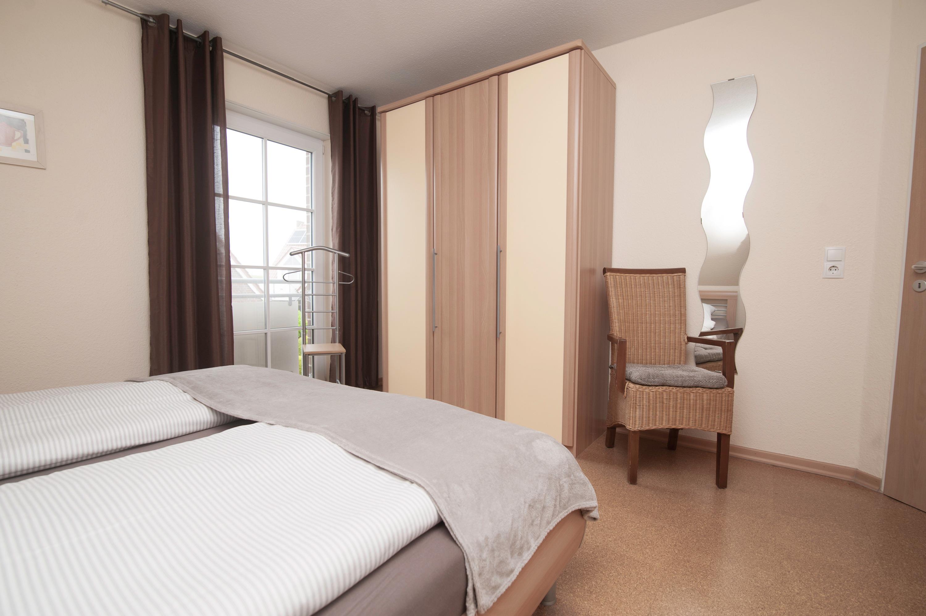Es gibt drei Schlafzimmer: ein Doppelbett (2 x 90 x 200 cm), zwei Einzelbetten gleicher Größe und ein drittes Schlafzimmer auf der Galerie mit zwei Einzelbetten (100 x 200 cm). Die Wohnung verfügt über Außenrollos und Insektenschutzgitter. Im Innenliegenden Bad befinden sich eine Dusche mit niedrigem Einstieg, ein WC. Hier befindet sich auch die Sauna. Eine Waschmaschine (5 kg) und ein Wäscheständer stehen im Abstellraum zur Verfügung.