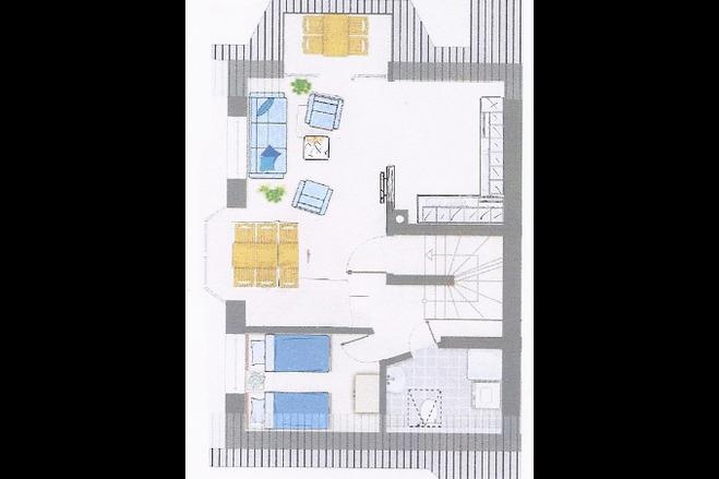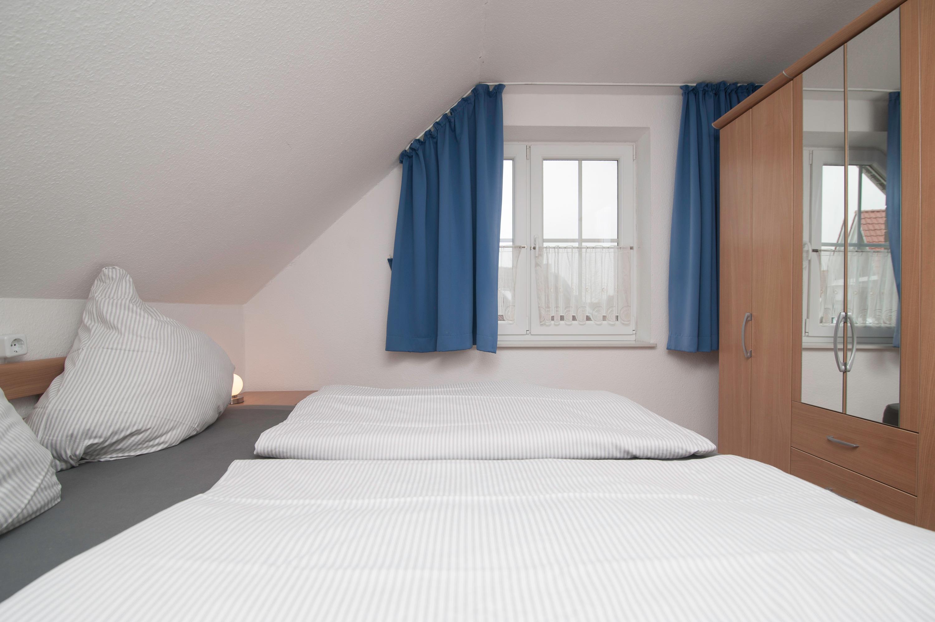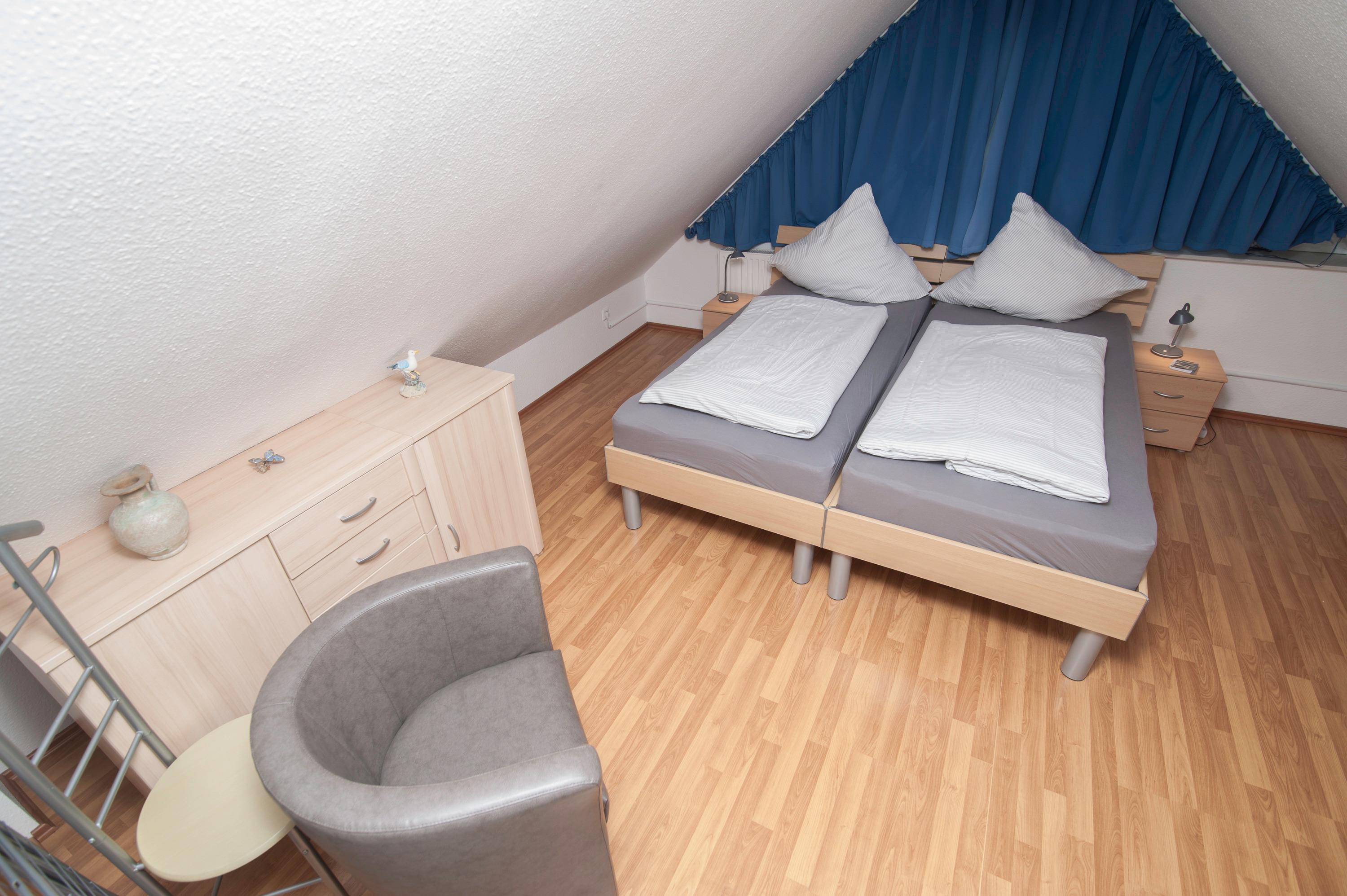 Sie verfügt über zwei Schlafzimmer eines mit einem Doppelbett (im Schrank befindet sich ein Möbel Tresor) und Schlafzimmer mit ebenfalls mit einem Doppelbett im Dachgeschoss, dort befindet sich auch das 2. TV.