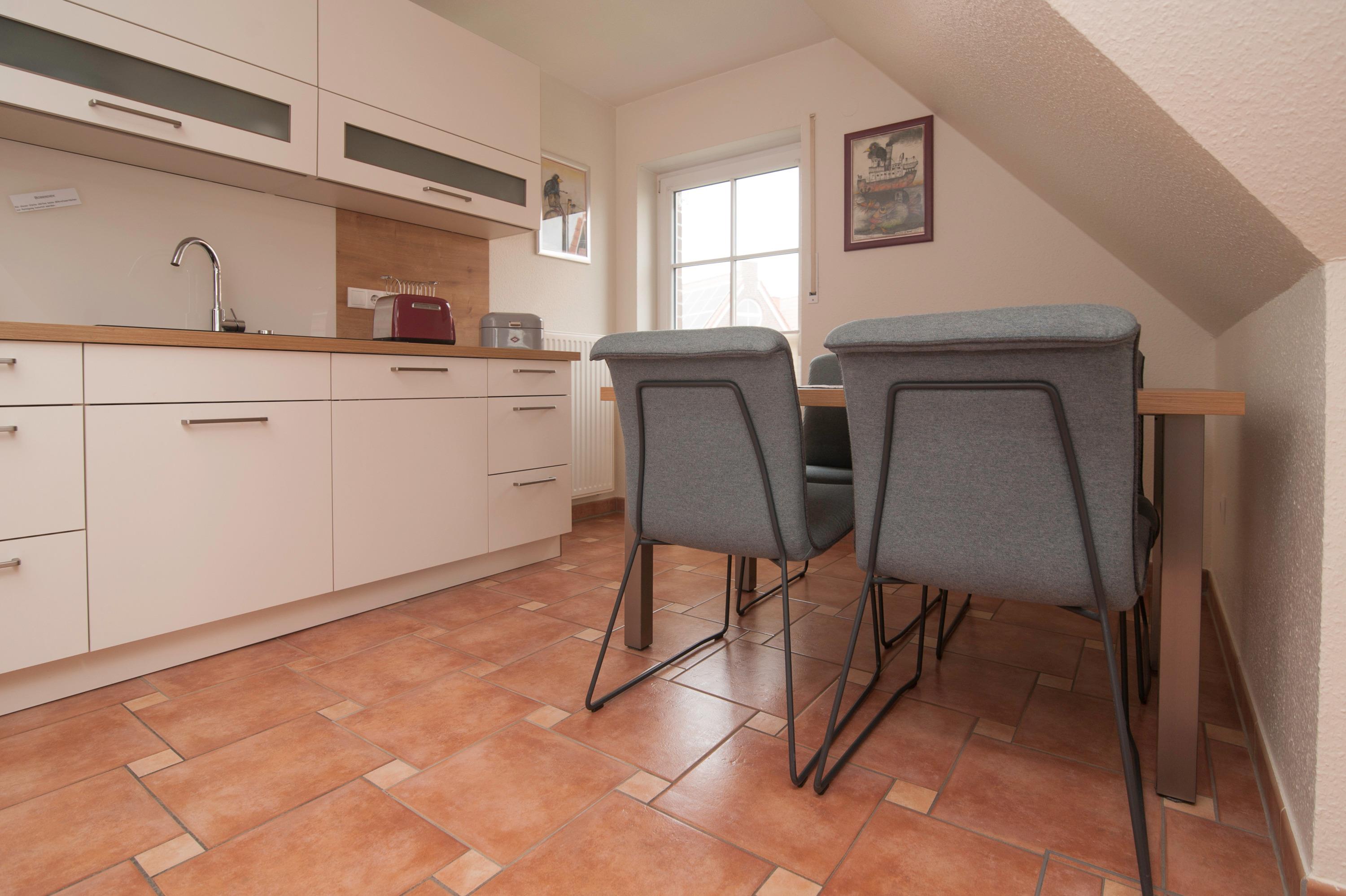 Liebevoll eingerichtete Ferienwohnung im Obergeschoss auf 2 Ebenen. Die Wohnfläche beträgt 76 m² und ist für 2 - 4 Personen komfortabel eingerichtet. Die Wohnung liegt direkt hinter dem Deich in einer ruhigen Sackgassenlage und ist ideal gelegen, da der malerische Greetsieler Hafen und der belebte Ortskern mit vielen Cafés und Restaurants nur wenige Gehminuten entfernt sind.