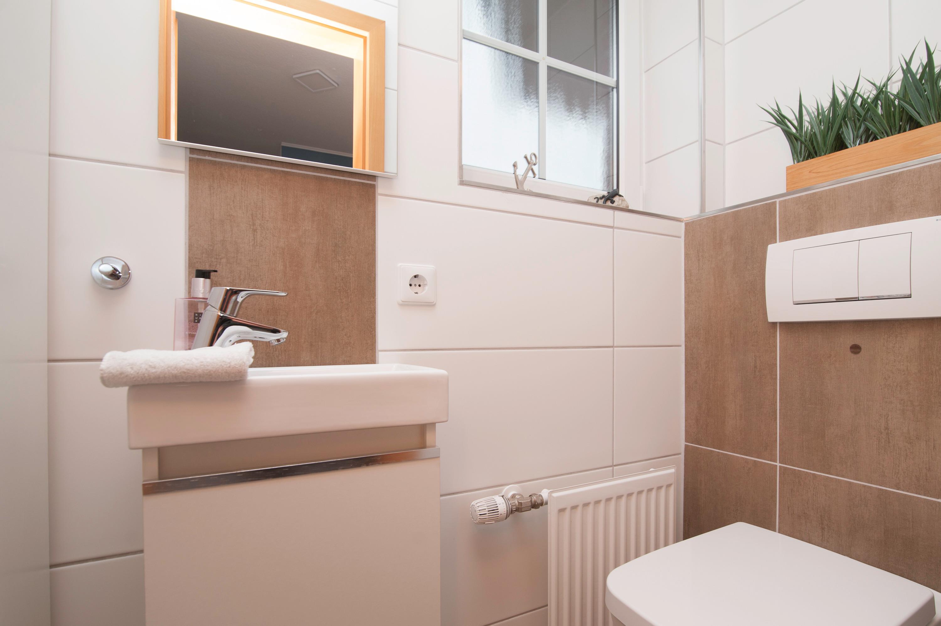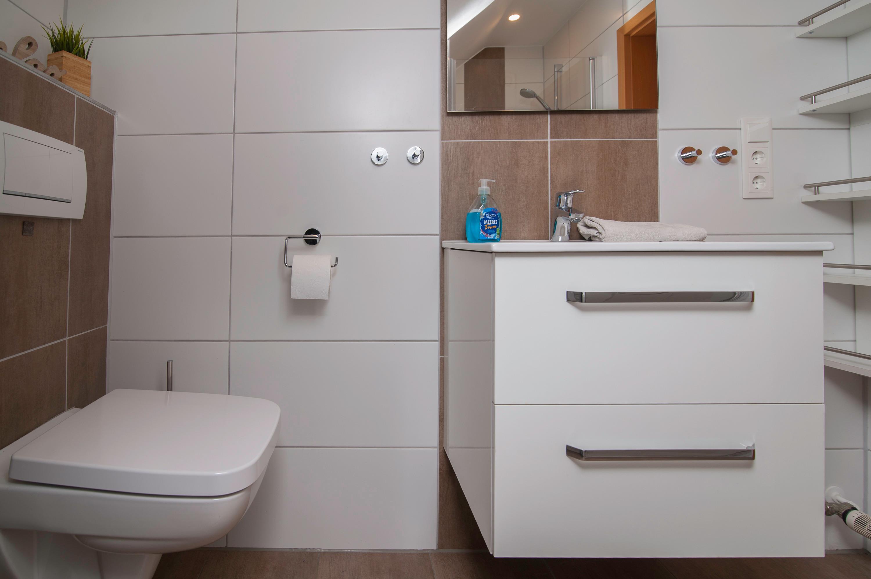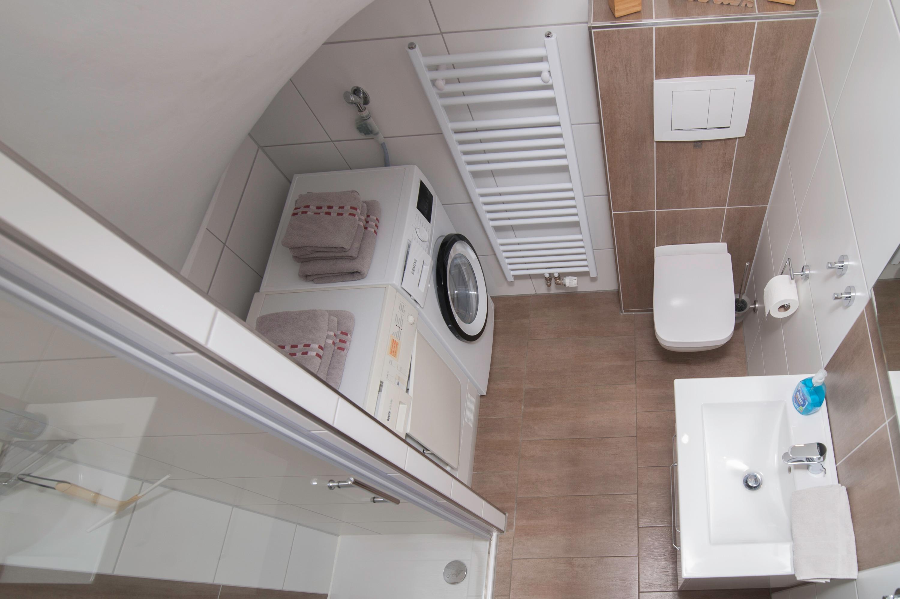 Für Ihr Wohlbefinden steht Ihnen in dem Badezimmer eine bodentiefe Dusche, Handtuchwärmer, Haartrockner, WC, Waschtisch mit Unterschrank, die Waschmaschine (7kg) und der Trockner zur Verfügung.