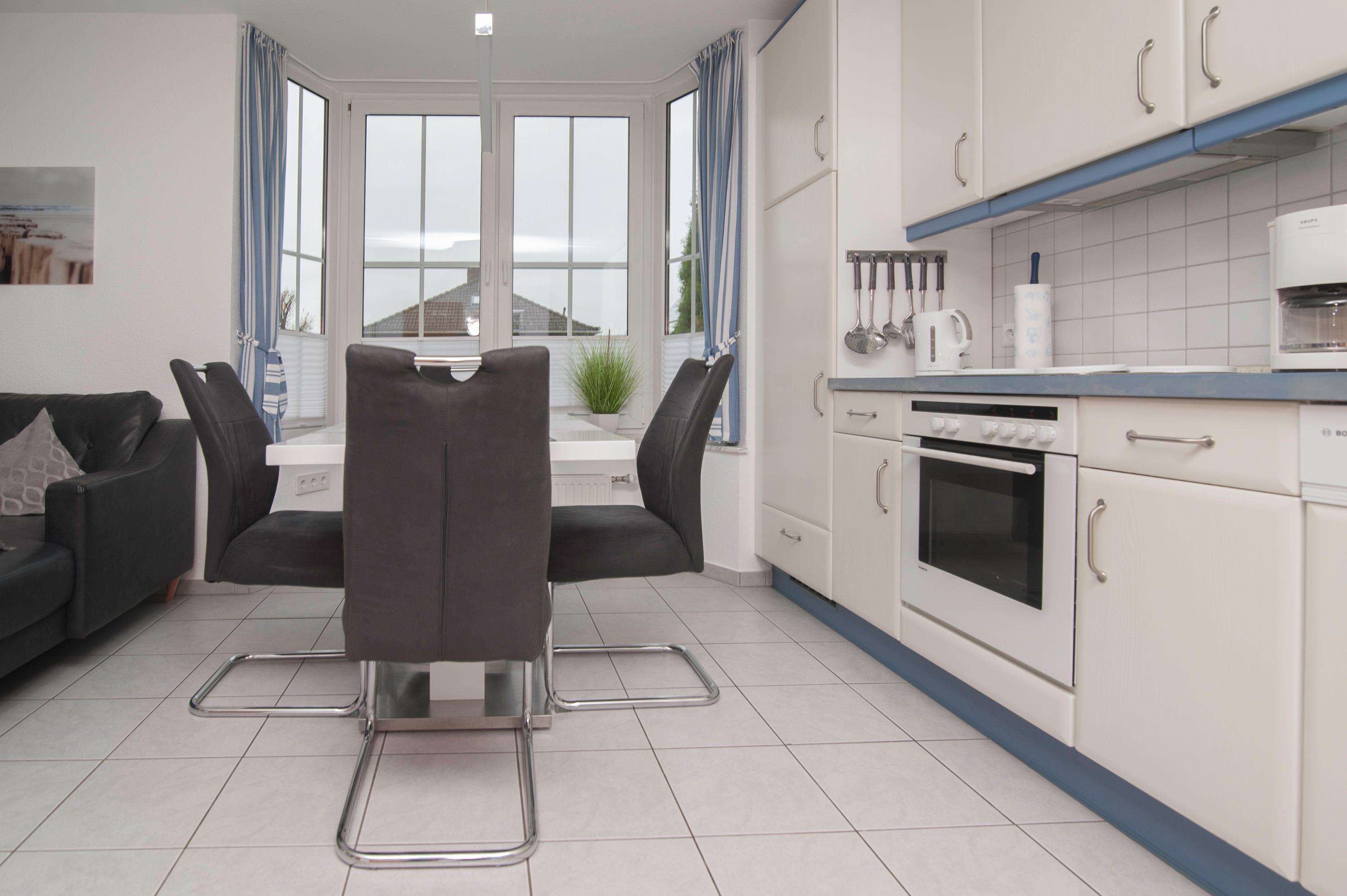 Küche ist ausgestattet mit Kühlschrank, 4 Plattenherd, Mikrowelle und vielem mehr.