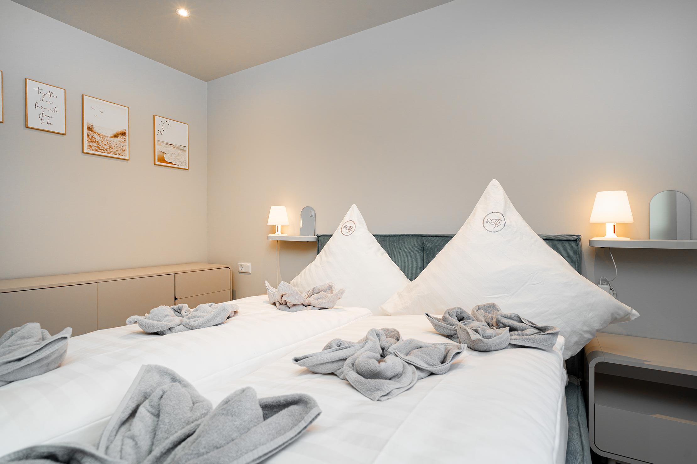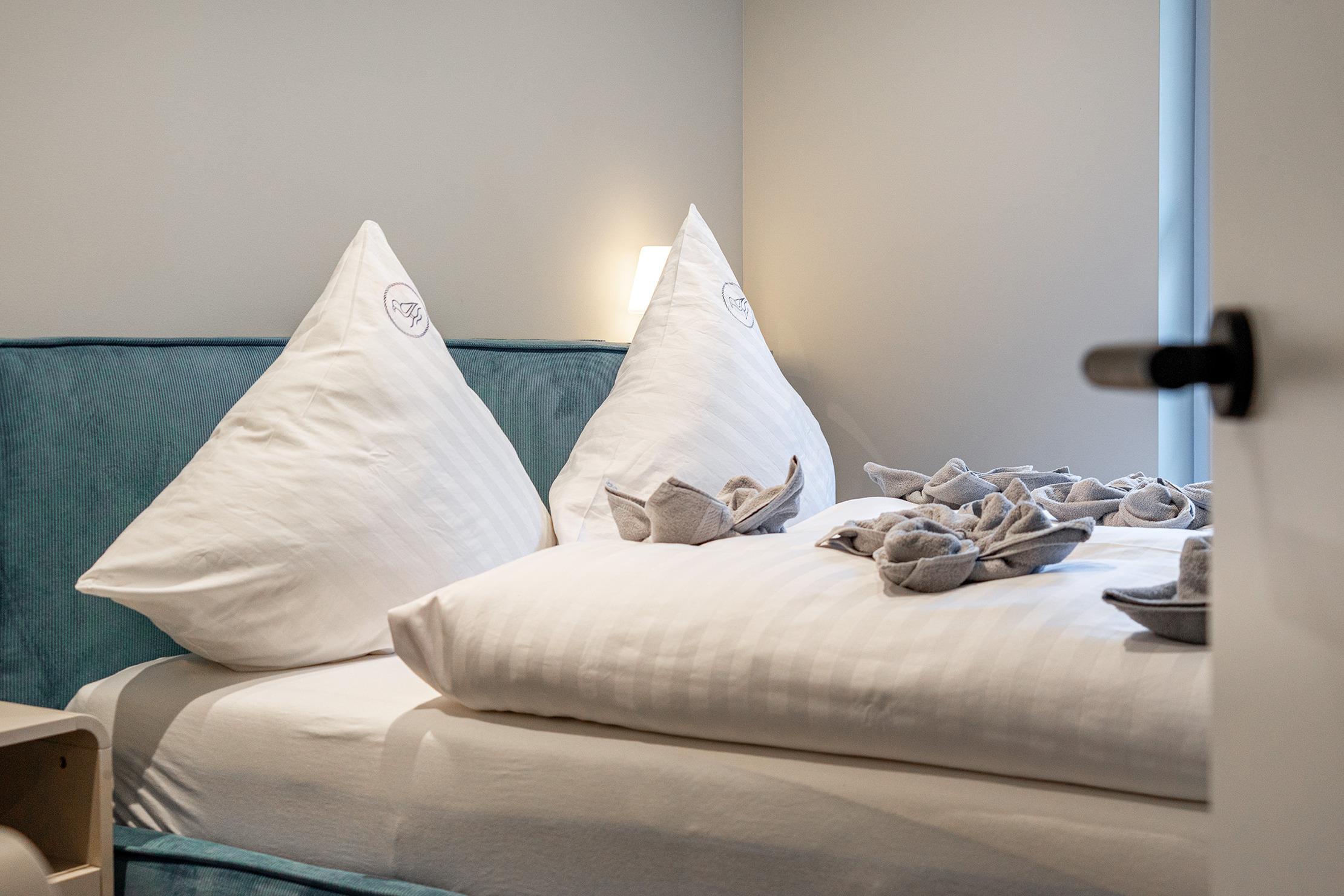 * Gerne bieten wir Ihnen unser Wäschepaket für Ihren Aufenthalt an, welches bezogene Betten, sowie Handtücher (Duschtuch, zwei Handtücher, Duschvorleger und ein Geschirrtuch) umfasst und € 19,50 p.P. kostet. Sie können dieses in der Buchungsstrecke unter dem Punkt "Ihr Mietpreis" hinzu buchen. *