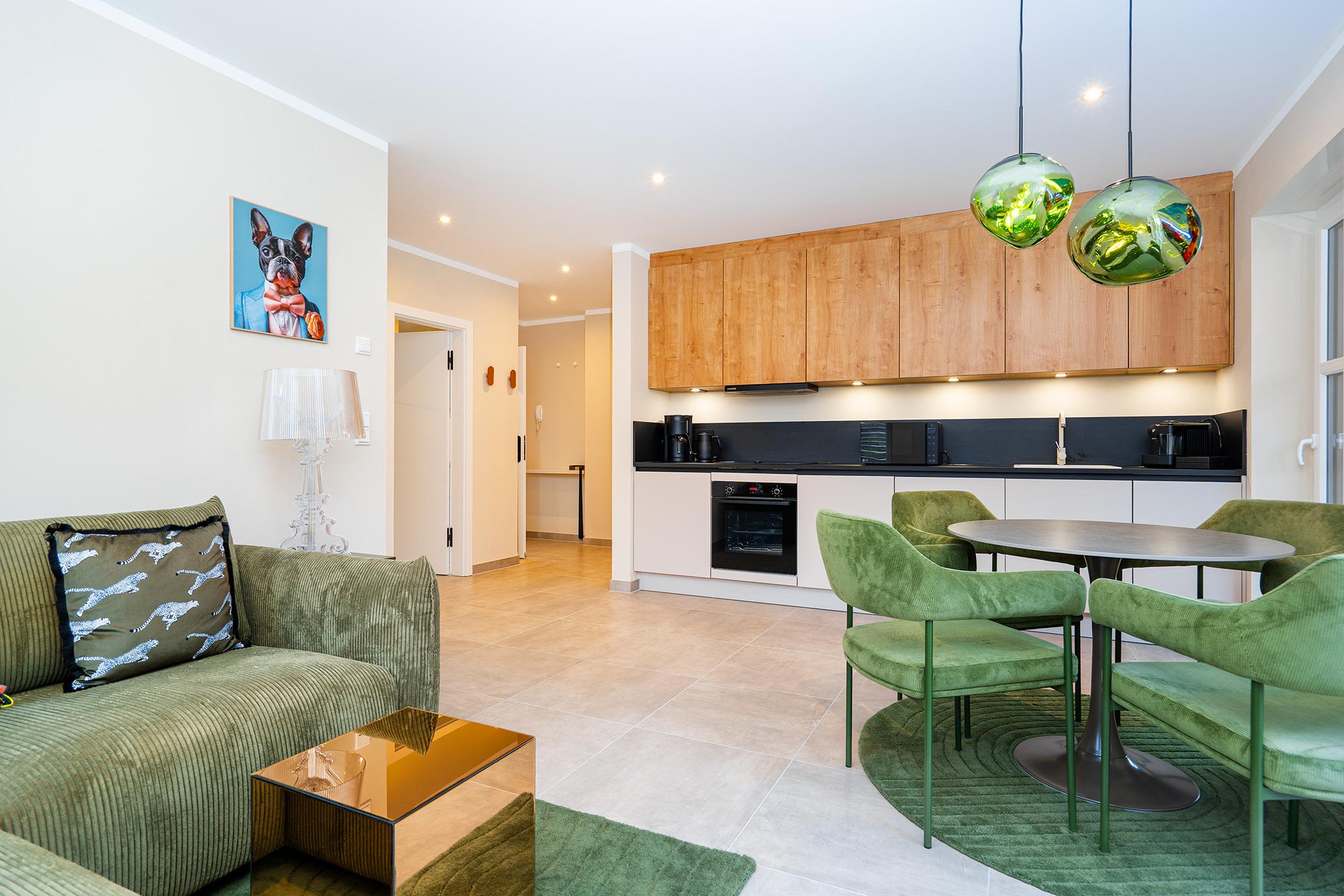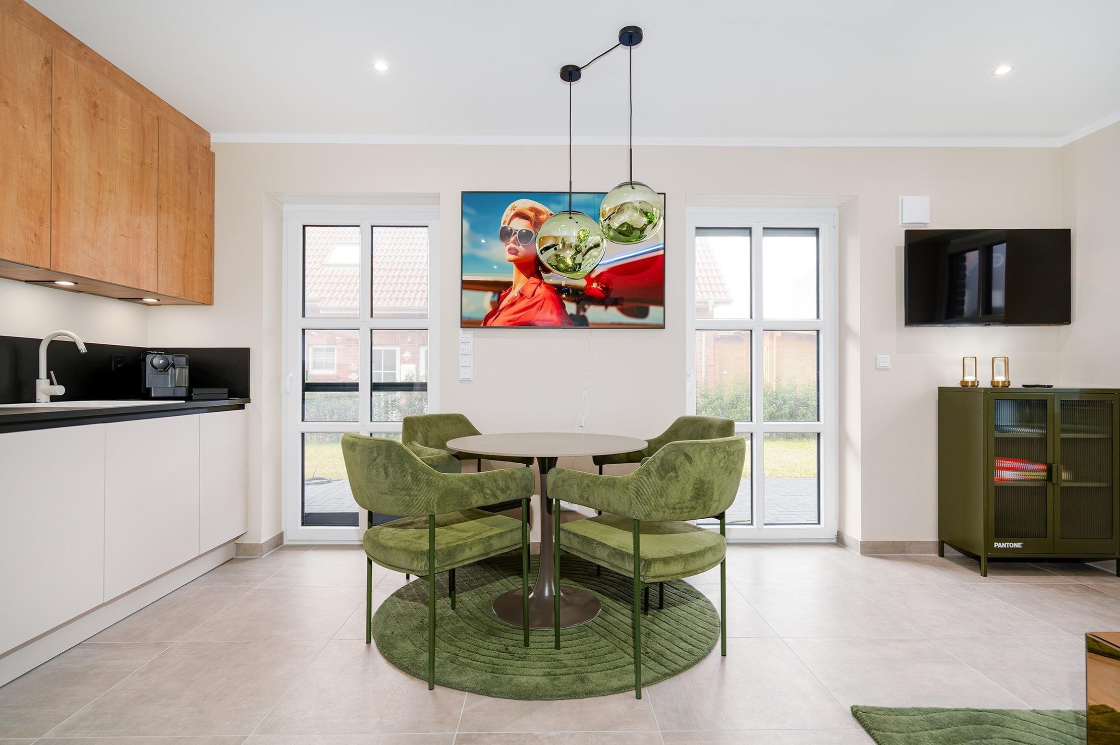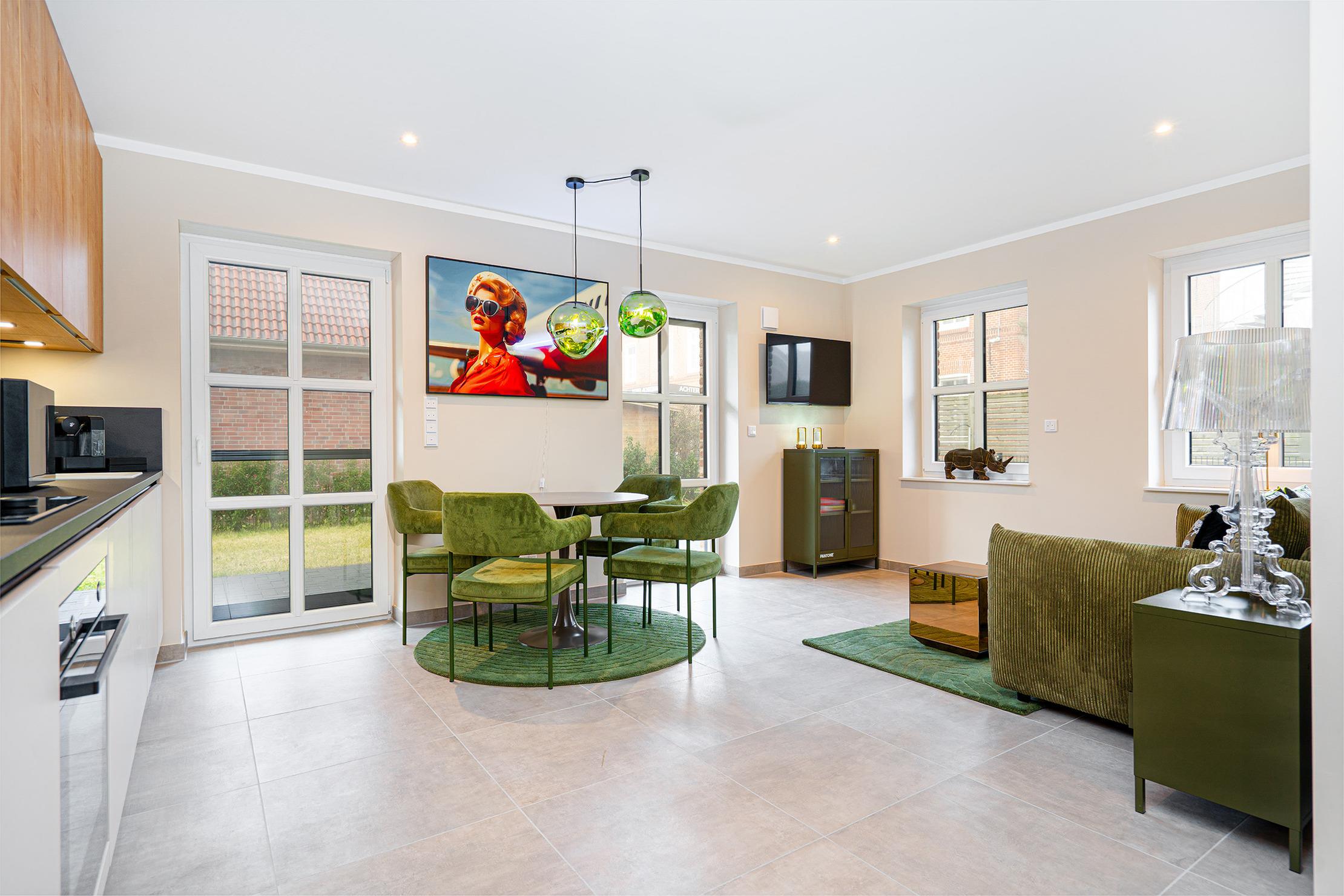 Mit der Ferienwohnung "Mauritz" erwartet Sie in Greetsiel ein exklusives Feriendomizil, das stilvolle Eleganz, luxuriösen Komfort und eine außergewöhnlich hochwertige Ausstattung auf harmonische Weise vereint. Die im Erdgeschoss gelegene Wohnung bietet auf 70qm ein großzügiges Raumgefühl und ein Ambiente, das vom ersten Moment an begeistert. Der lichtdurchflutete Wohn- und Essbereich bildet das Herzstück der Wohnung. Große Fenster sorgen für eine helle, freundliche Atmosphäre, das hochwertige Sofa lädt zu entspannten Abenden ein und der elegante Essbereich ist der perfekte Ort für gesellige Stunden. Die voll ausgestattete Küche überzeugt mit durchdachter Ausstattung und edlen Materialien. Direkt vom Wohnbereich aus betreten Sie die Terrasse und den angrenzenden Garten, den besonders Kinder oder Vierbeiner schätzen werden. Ob ein Frühstück in der Morgensonne oder ein entspannter Ausklang des Tages an der frischen Nordseeluft – dieser Außenbereich erweitert den Wohnraum auf angenehme Weise. Die beiden stilvollen Schlafzimmer bieten hochwertige Boxspringbetten sowie große Ablageflächen und TV's. Auch das moderne Tageslichtbad unterstreicht den gehobenen Charakter der Wohnung: Eine großzügige, ebenerdige Dusche, hochwertige Armaturen und eine geschmackvolle Gestaltung schaffen ein Ambiente, das an ein Boutique-Hotel erinnert. Im Außenbereich finden Sie einen reservierten Parkplatz mit Lademöglichkeit für E-Fahrzeuge sowie einen Abstellraum für Fahrräder. Die Ferienwohnung "Mauritz" besticht insgesamt durch ihre luxuriöse, bis ins Detail durchdachte Ausstattung und eine außergewöhnlich geschmackvolle Einrichtung. Hochwertige Materialien, harmonische Farbkonzepte und liebevolle Dekorationselemente verleihen der Wohnung eine besondere Exklusivität – ein Ort, an dem stilvolles Wohnen und entspannte Urlaubstage perfekt miteinander verschmelzen.