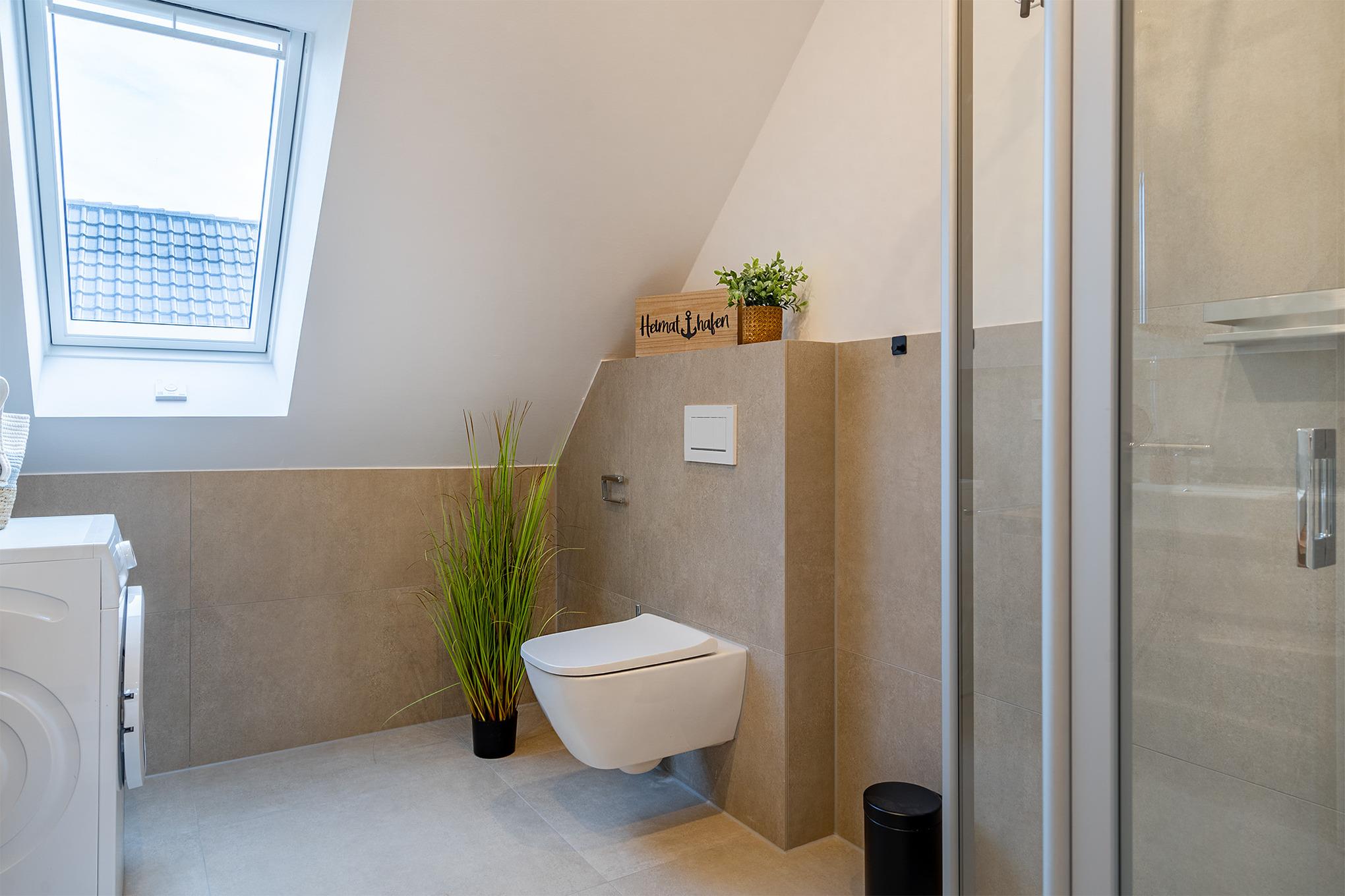 Die neue Ferienwohnung "Femke" im malerischen Greetsiel befindet sich im Obergeschoss und bietet auf etwa 65qm eine gemütliche und moderne Unterkunft für einen entspannten Urlaub an der Nordsee. Herzstück der Wohnung ist der offene Wohn- und Essbereich, der viel Platz zum gemeinsamen Entspannen bietet. Eine bequeme Sofaecke und ein Esstisch bieten genügend Raum für gemeinsame Stunden. Weiterhin bietet der Raum eine hochwertige und voll ausgestattete Küchenzeile. Von hier aus gelangen Sie direkt auf den Balkon, auf dem Sie die frische Nordseeluft genießen können. Die Wohnung verfügt über zwei Schlafzimmer mit Doppelbetten, die für erholsame Nächte sorgen. Das Tageslichtbad ist modern gestaltet und mit einer ebenerdigen Dusche ausgestattet. Zusätzlich steht ein separates Gäste-WC zur Verfügung, was die Wohnung besonders komfortabel für den gemeinsamen Urlaub mit der Familie oder Freunden macht. Ein Abstellraum innerhalb der Wohnung bietet praktischen Stauraum. Auch außerhalb ist für Komfort gesorgt: Ein separater Abstellraum für Fahrräder steht bereit, sodass Sie die Umgebung bequem mit dem Rad erkunden können. Außerdem gehört ein reservierter Parkplatz direkt zur Unterkunft. Auch die ruhige und dennoch zentrale Lage machen die Ferienwohnung "Femke" zum idealen Ausgangspunkt für einen erholsamen Aufenthalt, denn der Ortskern und Attraktionen für Familien sind nur wenige Schritte entfernt.