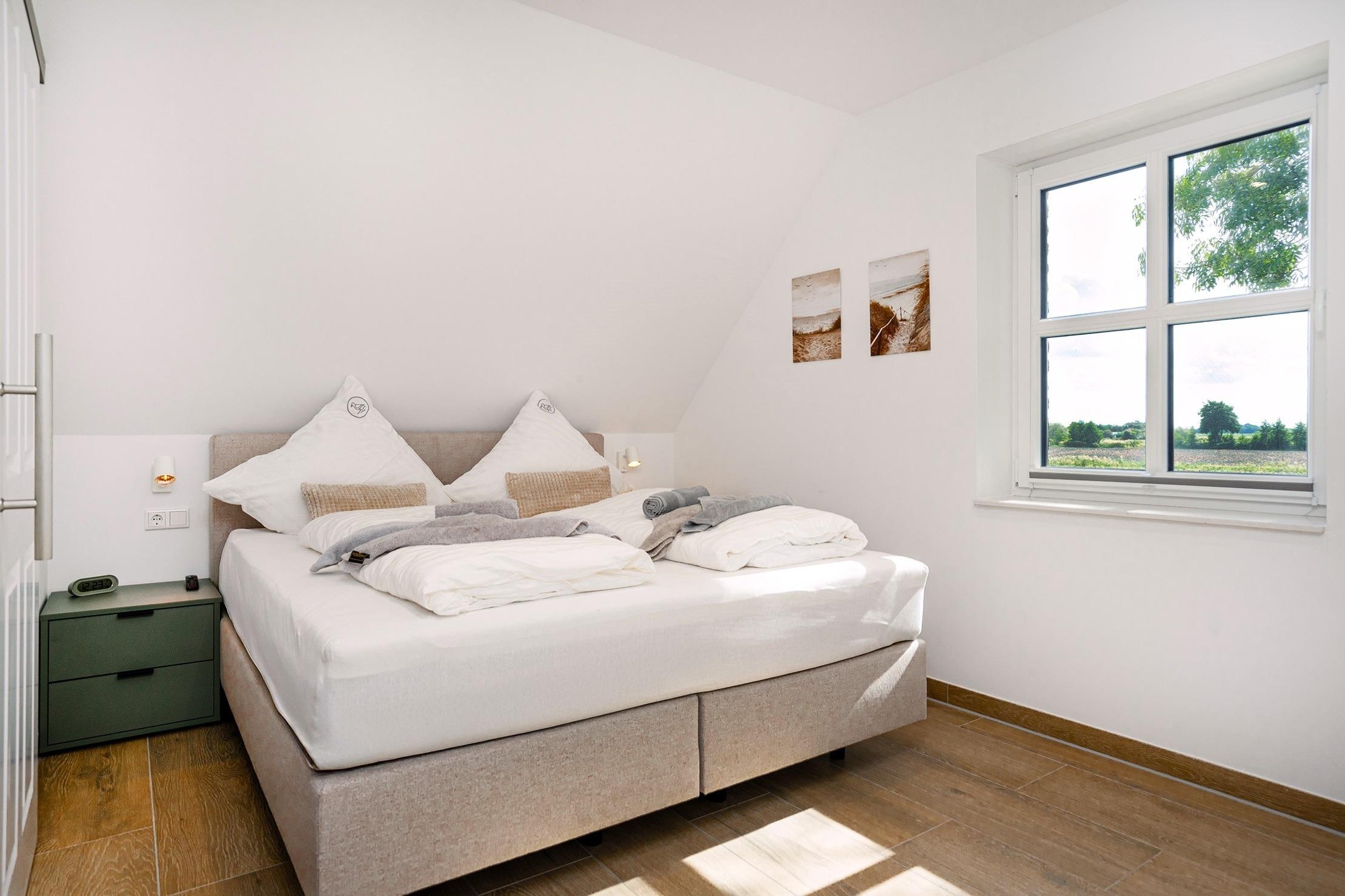 Die neue Wohnung „An der Gracht 2“ überzeugt durch ihre besondere Lage in unmittelbarer Nähe zum Wasser. Sie befindet sich im Obergeschoss in einem ruhigen Neubaugebiet am Ortsrand, wo das Wasser direkt am Haus verläuft und für eine entspannte, maritime Atmosphäre sorgt. Schon beim Ankommen wird deutlich: Hier steht Erholung im Vordergrund. Die sehr hochwertige und großzügig geschnittene Wohnung bietet auf etwa 55qm viel Platz für zwei Personen. Sie verfügt über ein gemütliches Schlafzimmer mit einem bequemen Boxspringbett, ein helles Tageslichtbad mit ebenerdiger Dusche sowie einen einladenden, offenen Wohnbereich. Dieser umfasst einen Essbereich, eine hochwertige, voll ausgestattete Küchenzeile sowie eine komfortable Sofalandschaft für erholsame Abende. Ein weiteres besonderes Highlight ist die integrierte Infrarotsauna, die zusätzlichen Komfort und Entspannung auf höchstem Niveau bietet. Ein ganz besonderes Merkmal sind die zwei Balkone – so wandern Sie mit der Sonne und finden zu jeder Tageszeit Ihr perfektes Plätzchen im Freien. Einer davon eröffnet einen direkten Weitblick auf das Wasser und die ländliche Umgebung und schafft eine einzigartige Wohlfühlatmosphäre. Der Gemeinschaftssteg an der Gracht steht ebenfalls zur Verfügung und unterstreicht den besonderen Charakter der Wasserlage. Neben einem PKW-Stellplatz befindet sich im Außenbereich außerdem ein Abstellraum für Fahrräder.