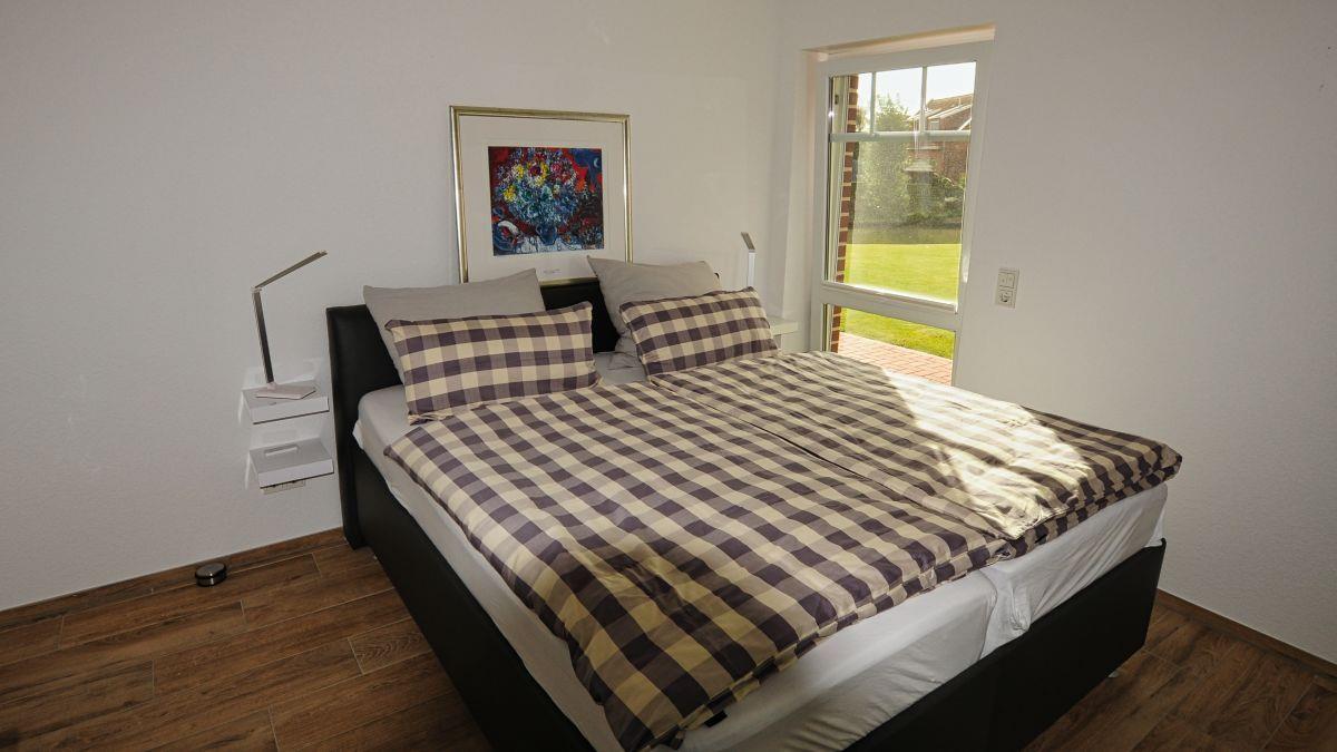 Beide Schlafzimmer sind mit Doppelbetten, Kleiderschrank und jeweils einem Flachbildfernseher ausgestattet. Eines der Schlafzimmer bietet einen traumhaften Blick auf das Sieltief!