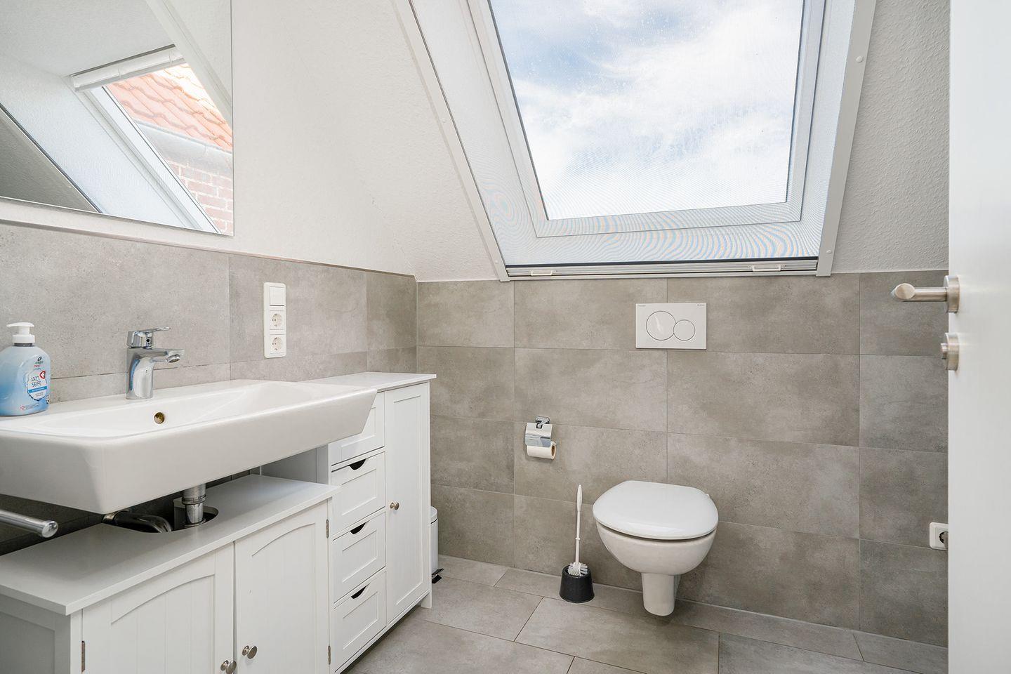 Ebenfalls auf dieser Etage befindet sich ein Schlafzimmer mit einem Doppelbett, einem weiteren Flachbildfernseher und großzügigen Verstaumöglichkeiten für Ihr Gepäck. Angrenzend befindet sich das Duschbad mit ebenerdiger Dusche und großem Dachflächenfenster.