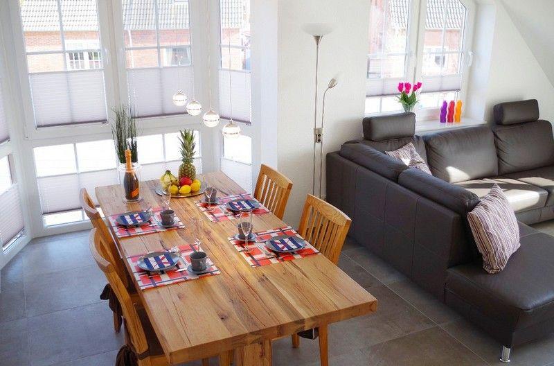 Sonnige Obergeschoss-Wohnung in Greetsiel, zentral aber ruhig gelegen nur wenige Gehminuten von den Zwillingsmühlen und dem Zentrum entfernt.