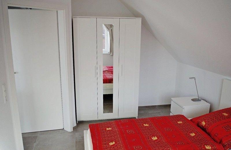 Auf der ersten Etage befindet sich das Elternschlafzimmer mit Doppelbett (zwei Matratzen), Kleiderschrank und Verdunklungsvorhängen und das moderne Badezimmer, mit Dusche (Regenbrause), Föhn, Handtuchheizung und dem Waschtrockner.