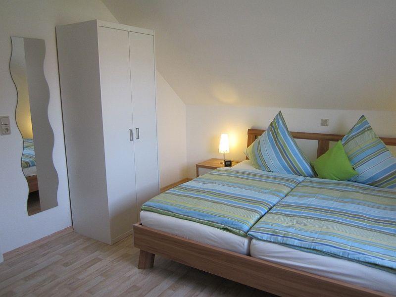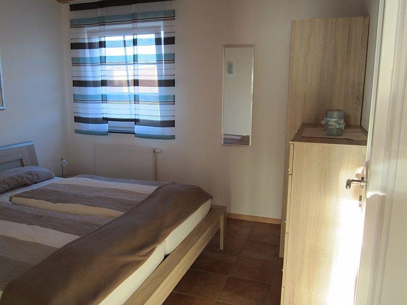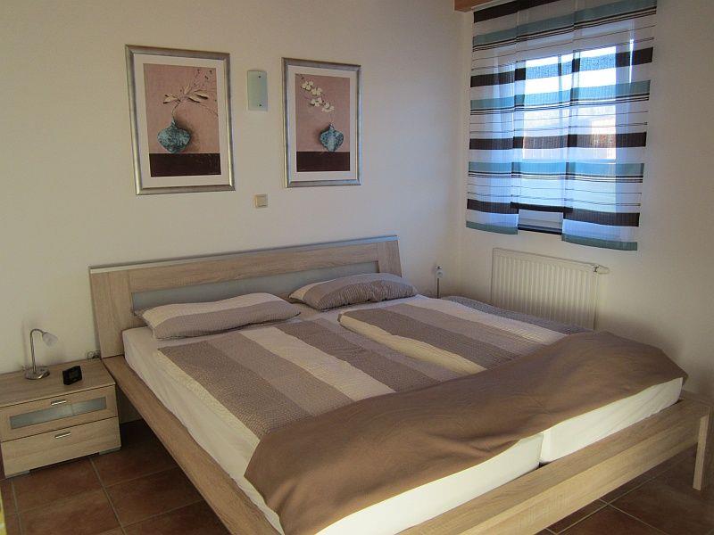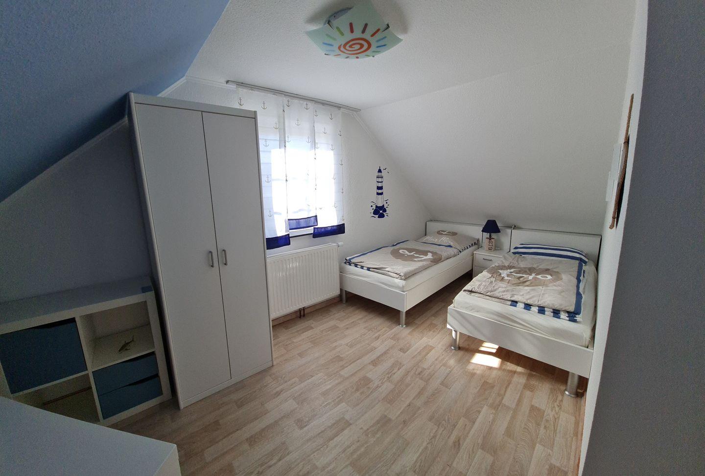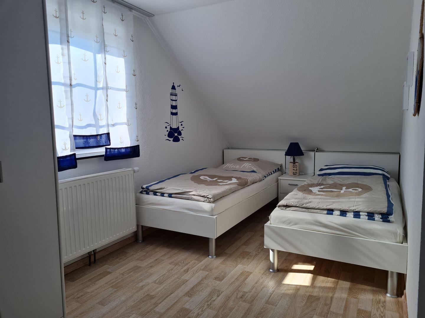 Das Haus ist für eine Unterbringung von bis zu 6 Personen geeignet. Dafür stehen Ihnen 3 Schlafzimmer mit jeweils 2 Betten zur Verfügung. Ein Schlafzimmer mit Doppelbett im Erdgeschoss und ein Schlafzimmer mit Doppelbett im Obergeschoss, sowie ein Kinderschlafzimmer mit 2 Einzelbetten, ebenfalls im Obergeschoss. Ein Kinderreisebett und ein Kinderhochstuhl stehen Ihnen kostenlos zur Verfügung. Alle drei Schlafzimmer verfügen über innenliegende Verdunklungsrollos!