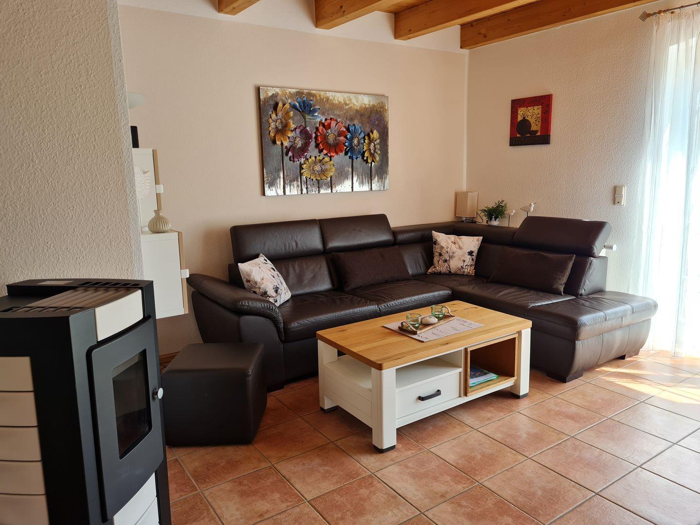 Ein besonderes Highlight ist der Pelletofen im Erdgeschoss. In den Monaten Oktober bis April stellen wir Ihnen eine Füllung Pellets pro Aufenthalt für den Ofen kostenlos zur Verfügung, so können Sie, gleich nach Ihrer Ankunft, die wohlige Wärme des brennenden Feuers genießen.