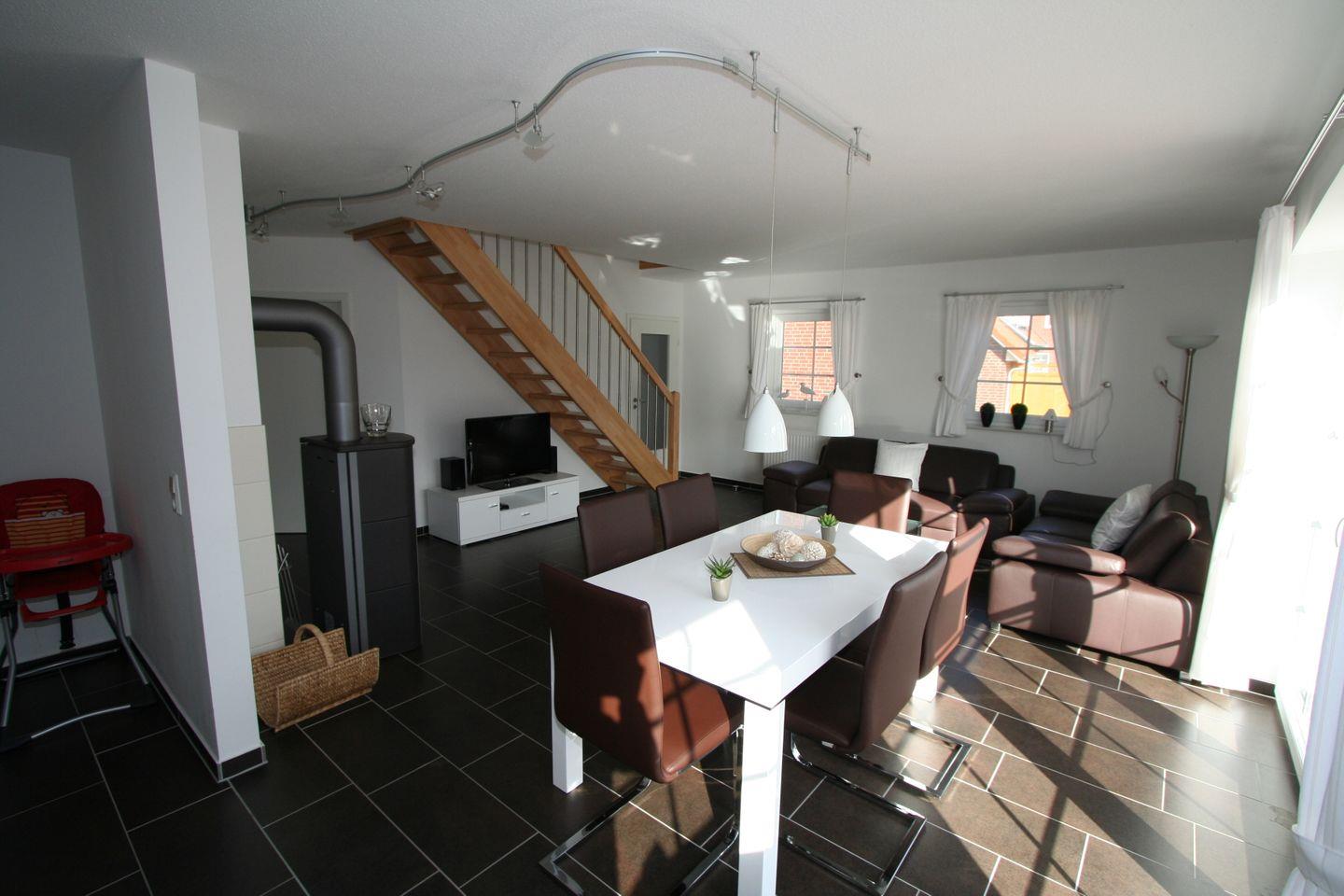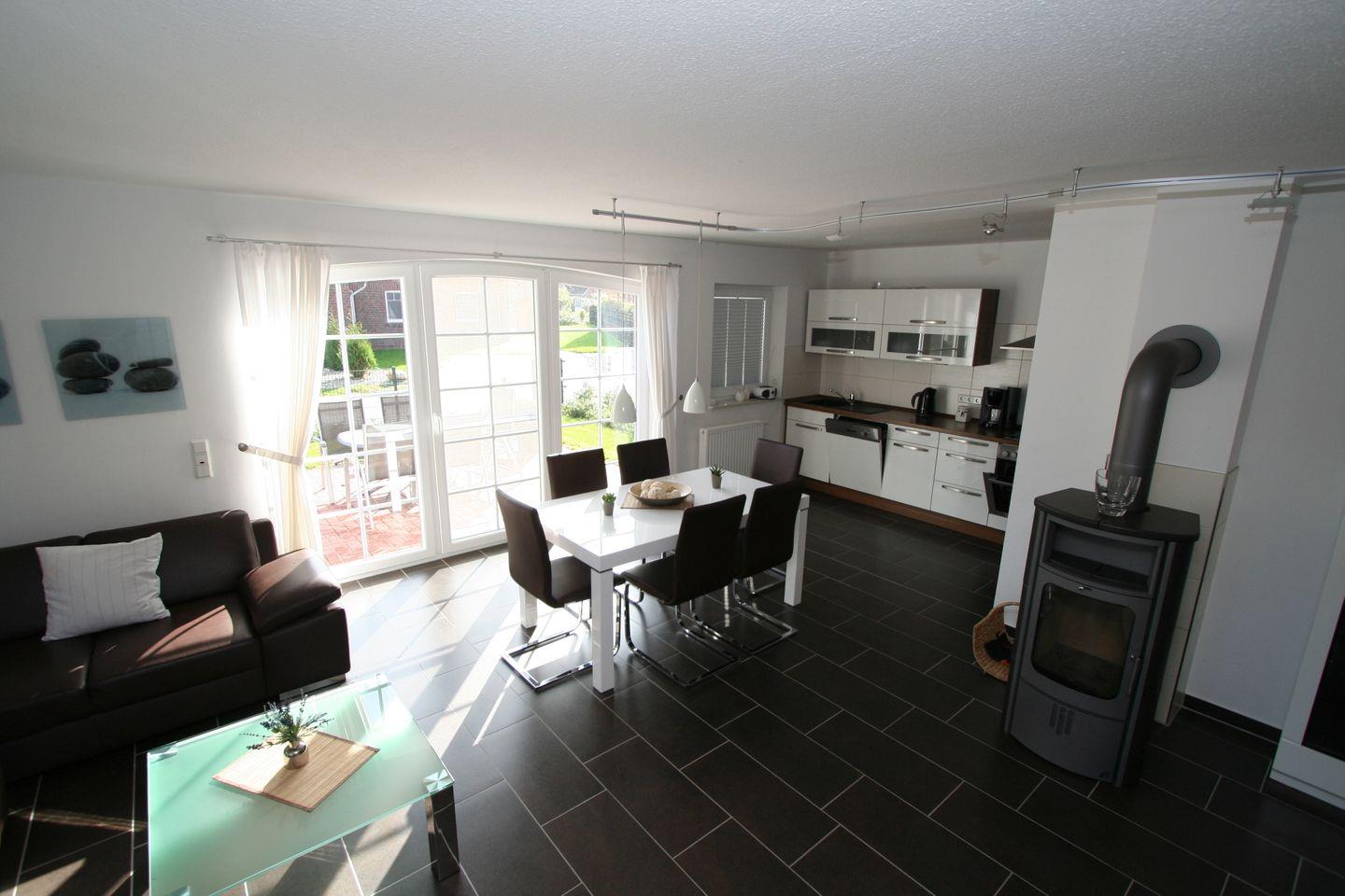 Für gemütliche Abende sorgt ein Kaminofen oder im Sommer die schön möblierte Terrasse. Im Wohnzimmer und im Kinderzimmer befindet sich jeweils ein TV Gerät.