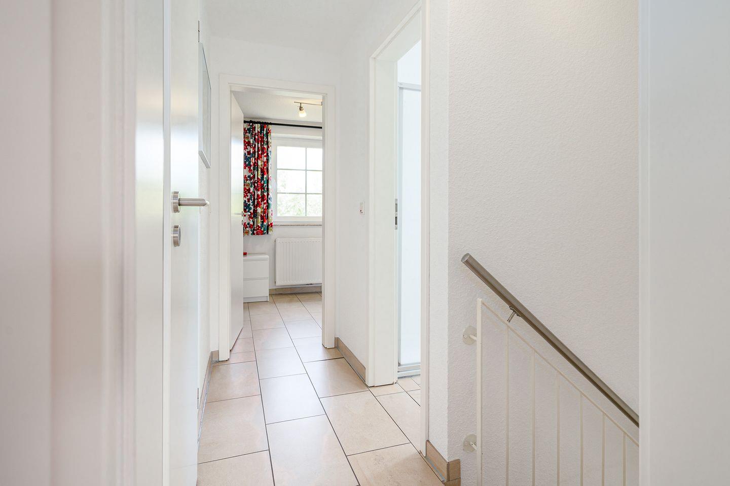 Im Abstellraum finden Sie ein Kinderbettchen aus Holz, einen Hochstuhl und ein Bügelbrett/eisen. Auch das Obergeschoss ist komplett gefliest. In den beiden oberen Schlafzimmern lässt sich bequem ein Kinderbett aufstellen. Im Kinderzimmer befindet sich ein CD Spieler inkl. Kassettenabspielgerät.