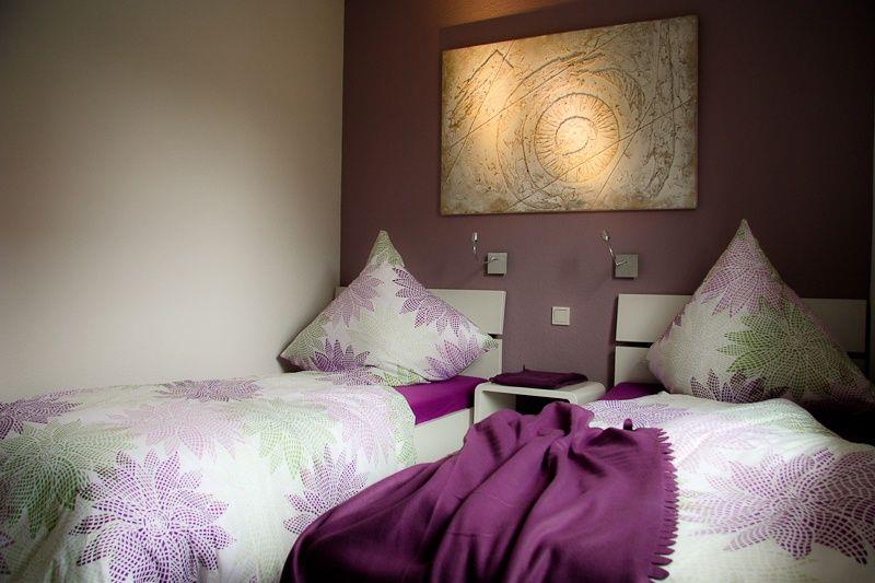 Es stehen Ihnen zwei Schlafzimmer (1 x DB, 2 x EB), davon eins mit weiterem TV zur Verfügung. Beide Schlafräume sind mit Fliegengittern versehen. Ein trendiges Bad mit ebenerdiger Glasdusche und riesigem Spiegel erfüllt auch gehobene Ansprüche. Zum Komfort dieser Ferienwohnung gehören auch ein Waschtrockner und ein separates Gäste-WC.