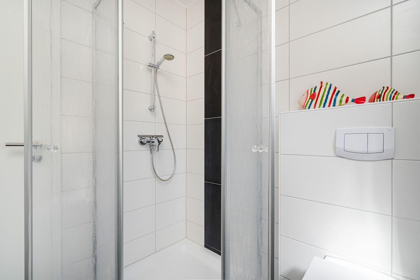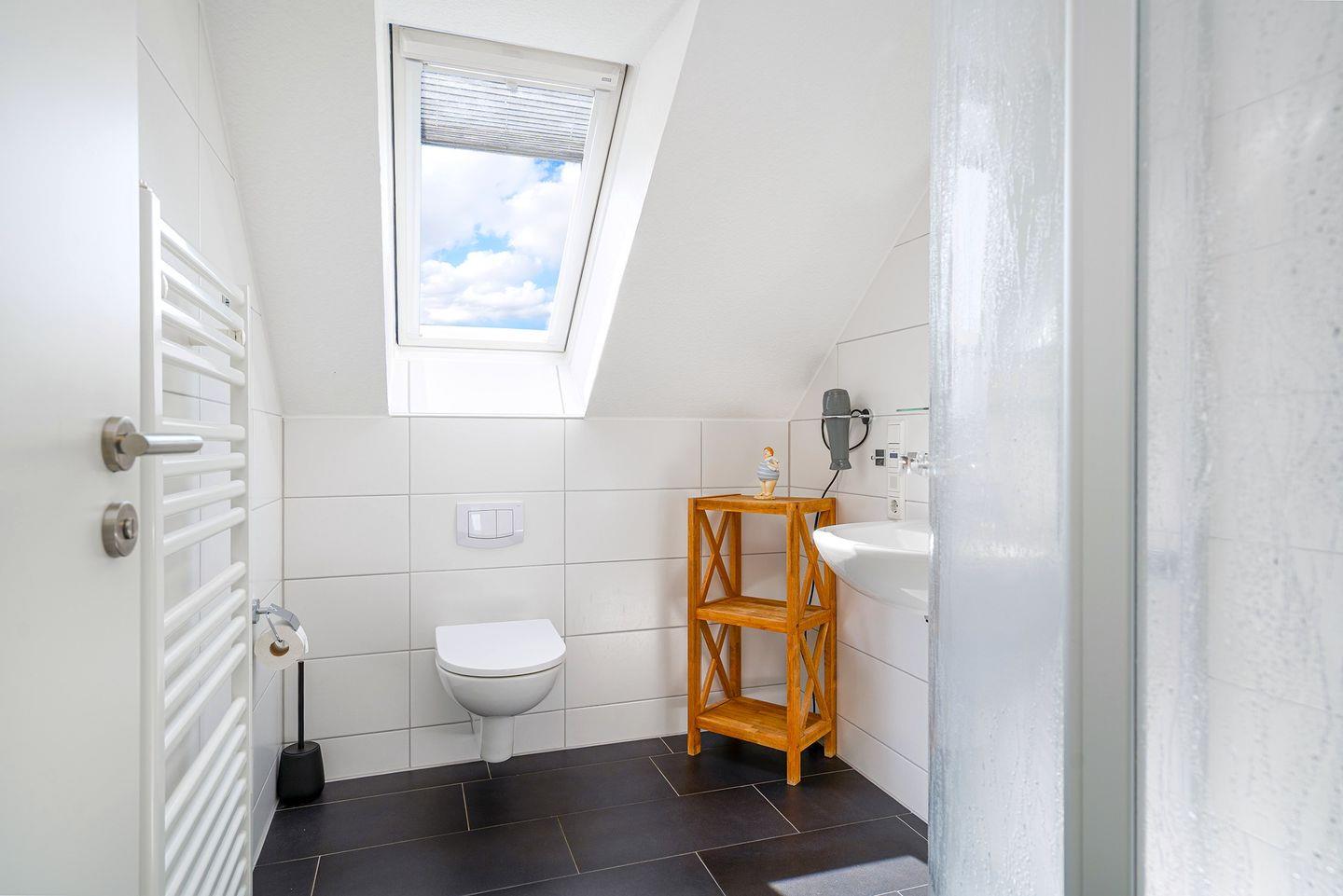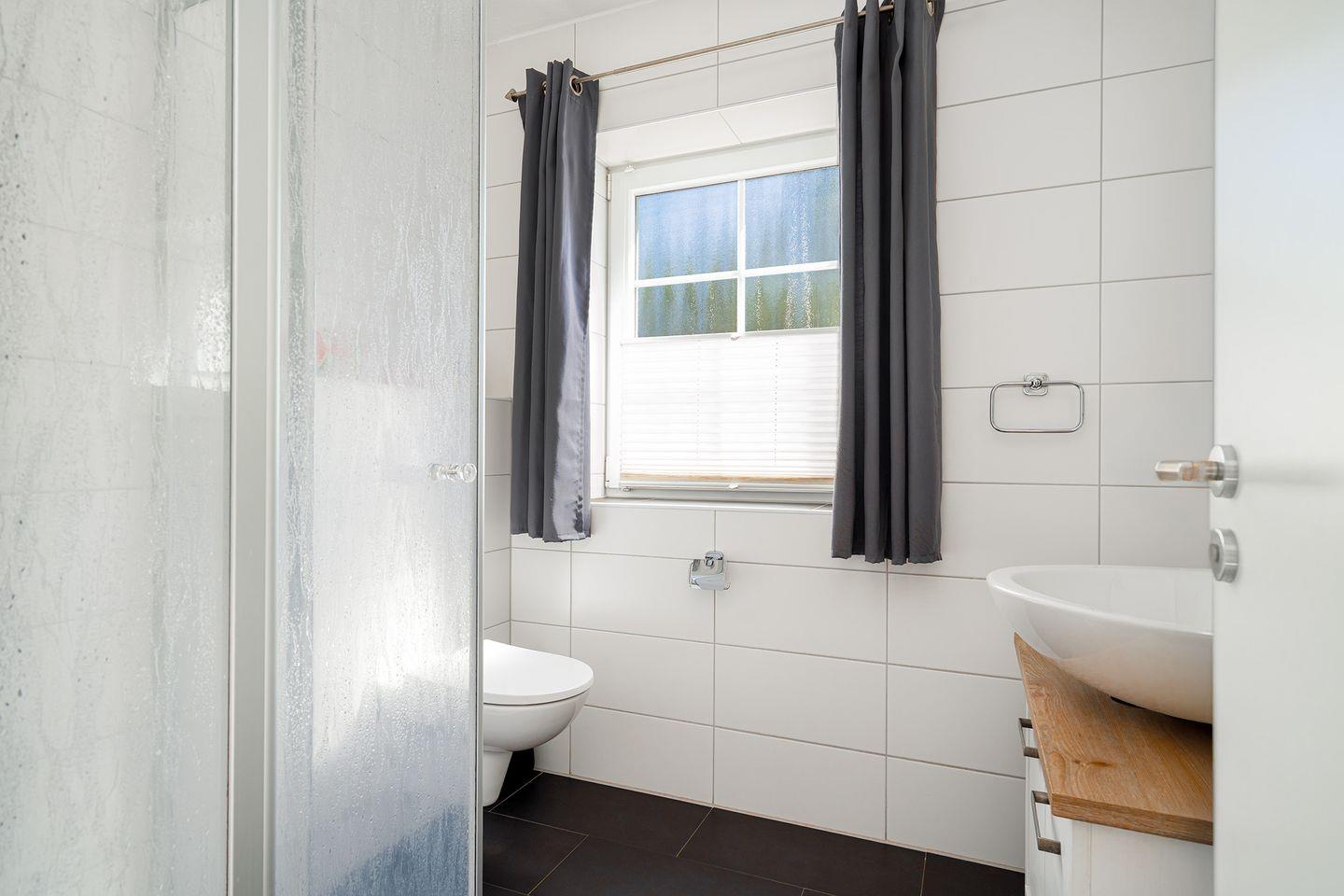 Das Haus verfügt über 3 Schlafräume (1xEG, 2xOG) und jeweils ein Duschbad in Erd- und Obergeschoss. Die Schlafräume sind mit Laminat ausgelegt, die Bäder und Wohnräume sind mit hochwertigen Fliesen versehen und mit Fußbodenerwärmung ausgestattet.
