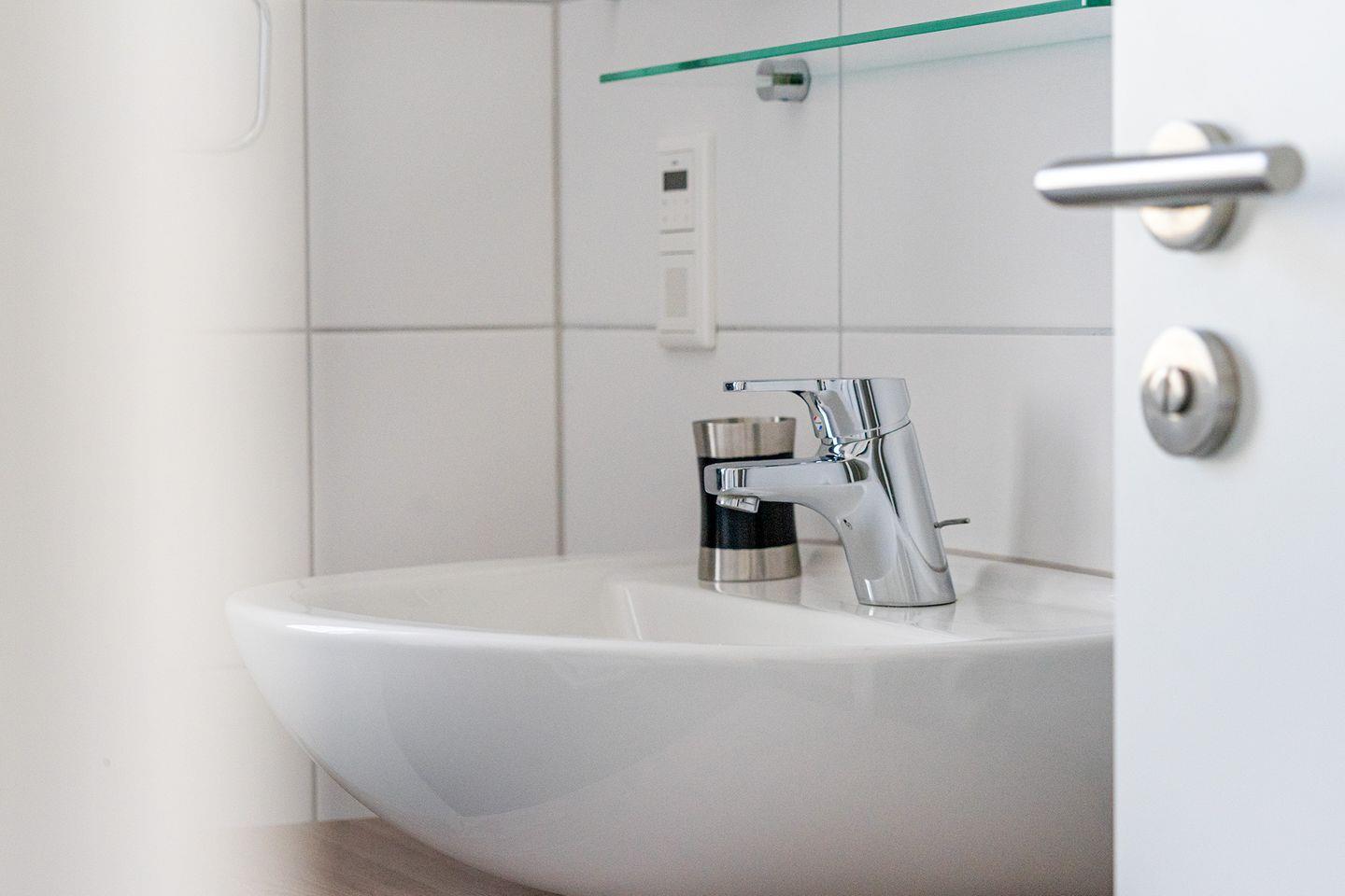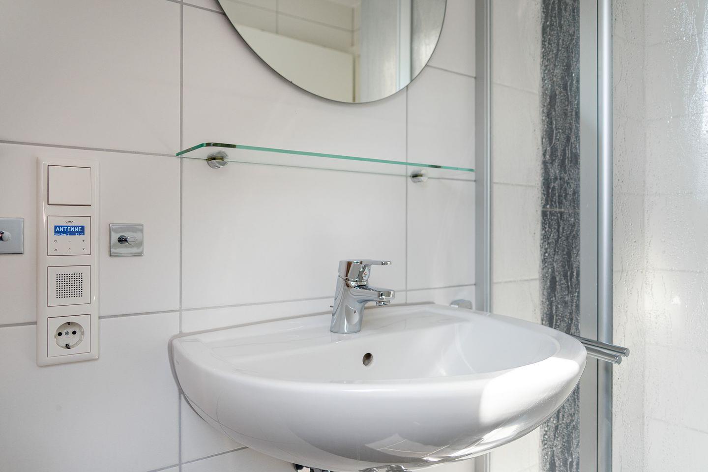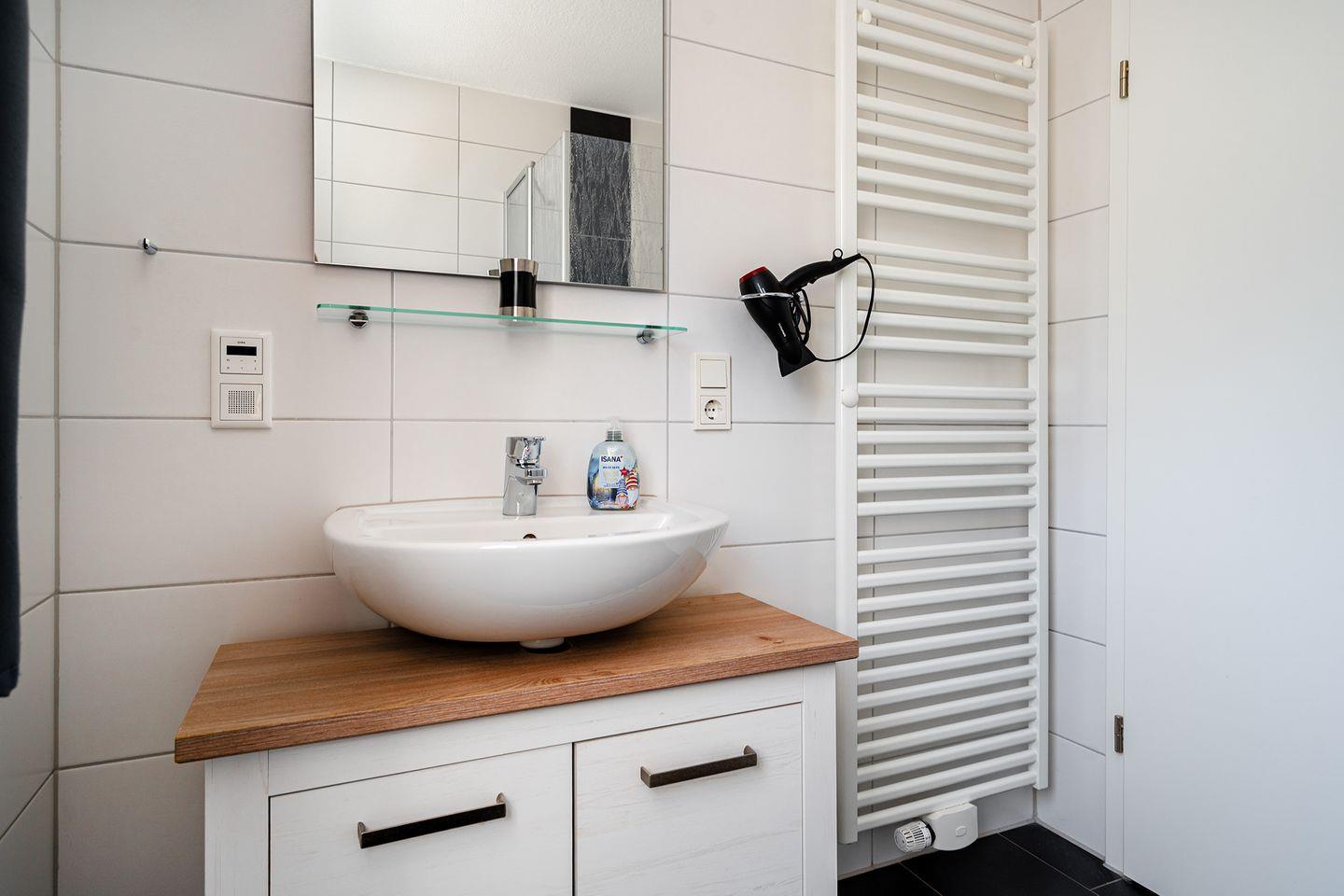 Das Haus verfügt über 3 Schlafräume (1xEG, 2xOG) und jeweils ein Duschbad in Erd- und Obergeschoss. Die Schlafräume sind mit Laminat ausgelegt, die Bäder und Wohnräume sind mit hochwertigen Fliesen versehen und mit Fußbodenerwärmung ausgestattet.
