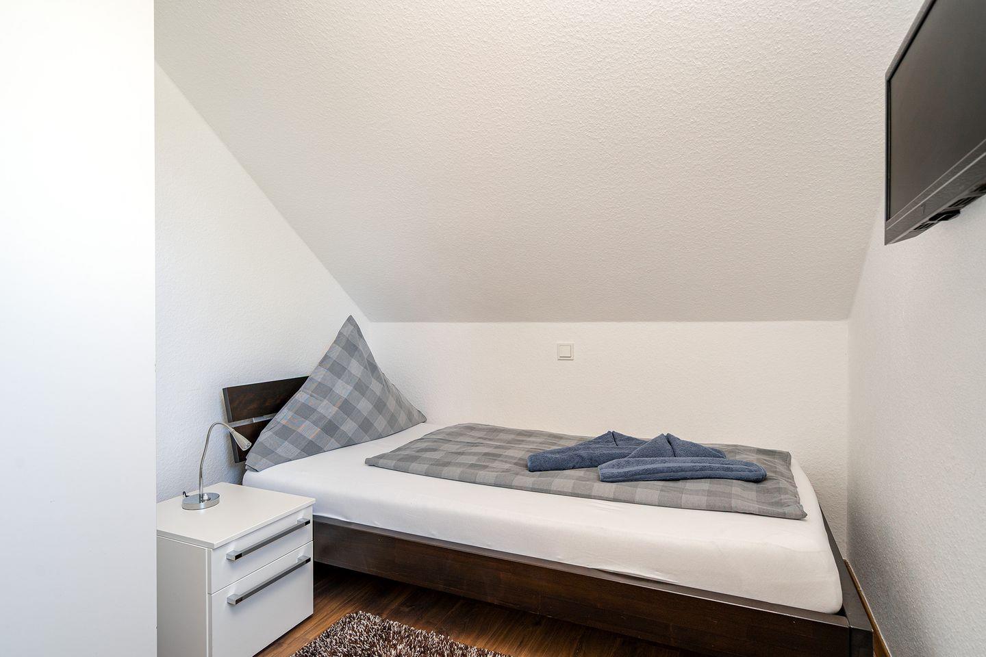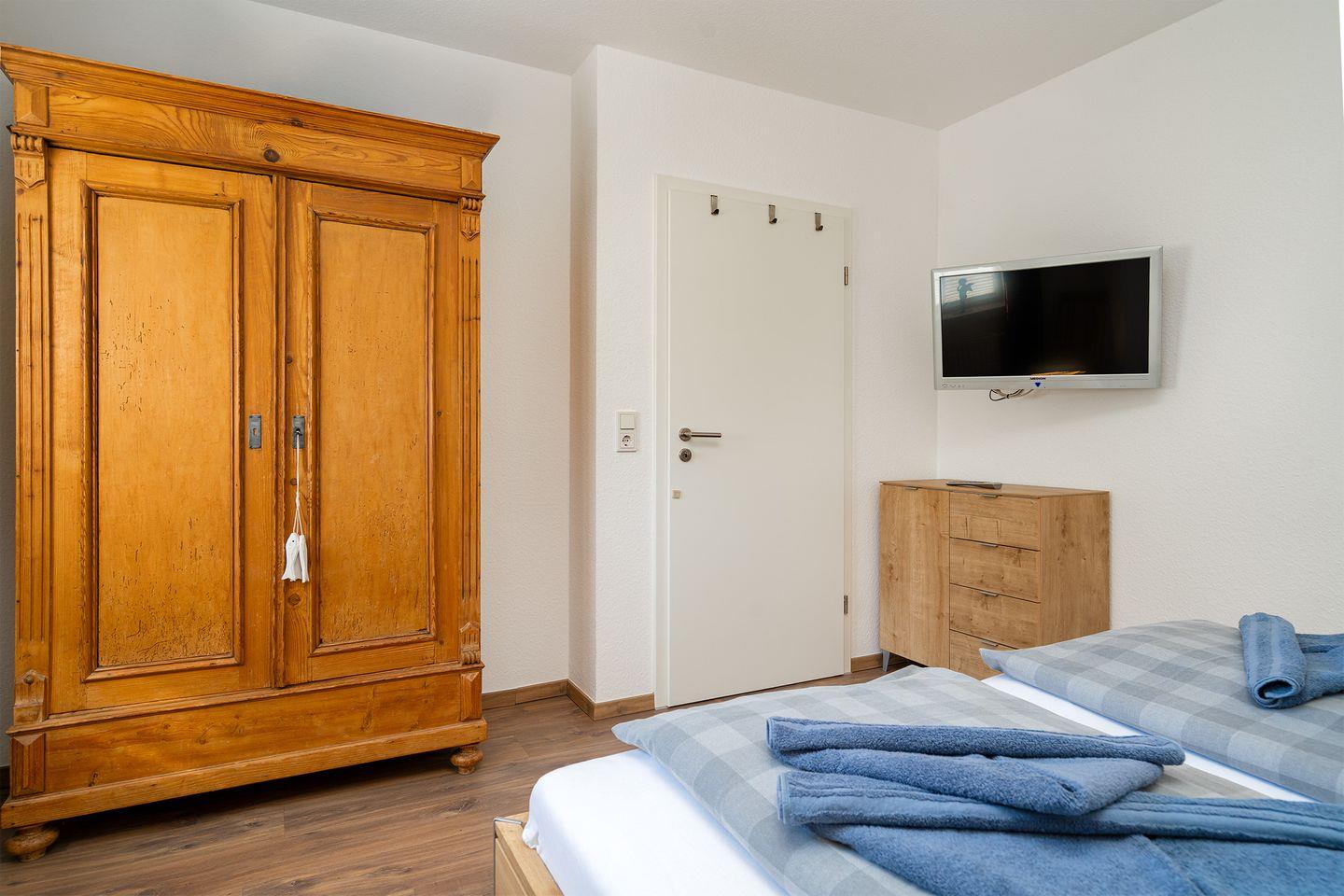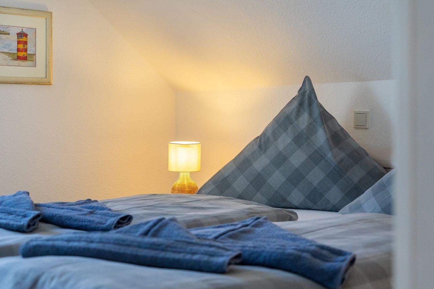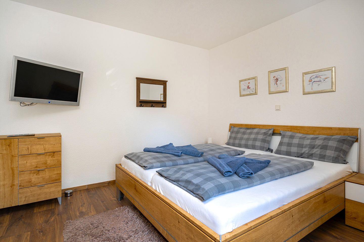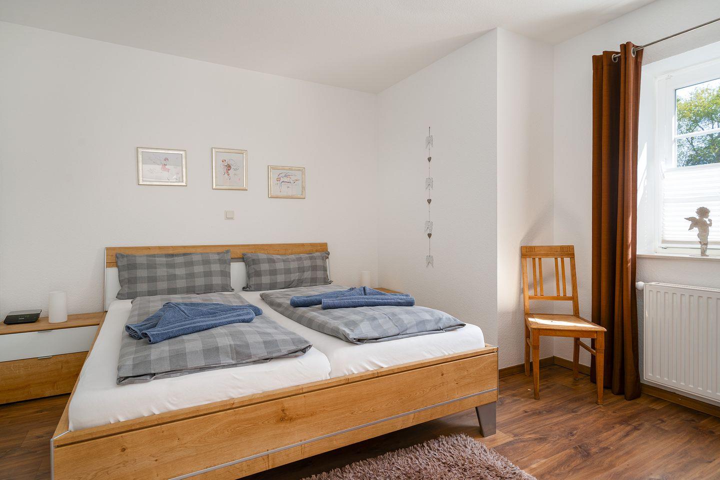 Das Wohnzimmer und alle Schlafräume verfügen über Flachbildschirme mit Satellitenempfang, DVD-Player. Das Schlafzimmer im Erdgeschoss ist vom Wohnbereich und der Küche komplett abgetrennt und verfügt wie ein weiteres Schlafzimmer im Obergeschoss über Doppelbetten (1,80 x 2,00 m). In dem dritten Schlafzimmer befinden sich zwei Einzelbetten (1 x 2,00 m). Die Fenster in den Schlafräumen und viele weitere Fenster wurden mit Fliegengittern versehen.