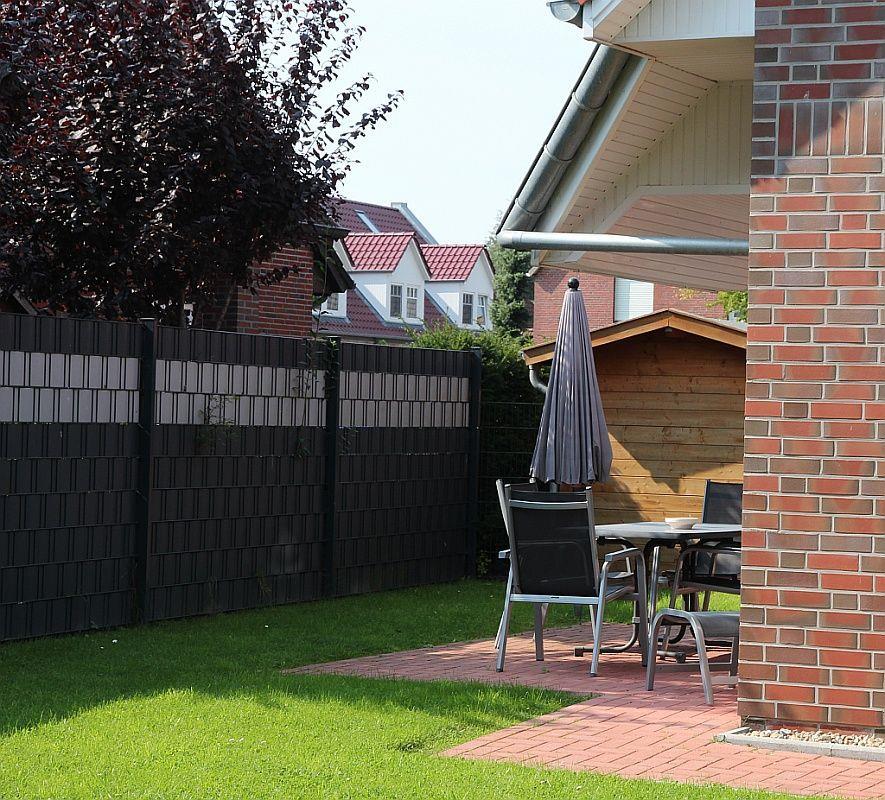 Ein kleiner Garten mit gemütlicher Terrasse, großem Weber-Grill (Holzkohle) sowie Mobiliar und Sonnenschirm, laden zu einem erholsamen Urlaub ein. Die Terrasse ist fertig.