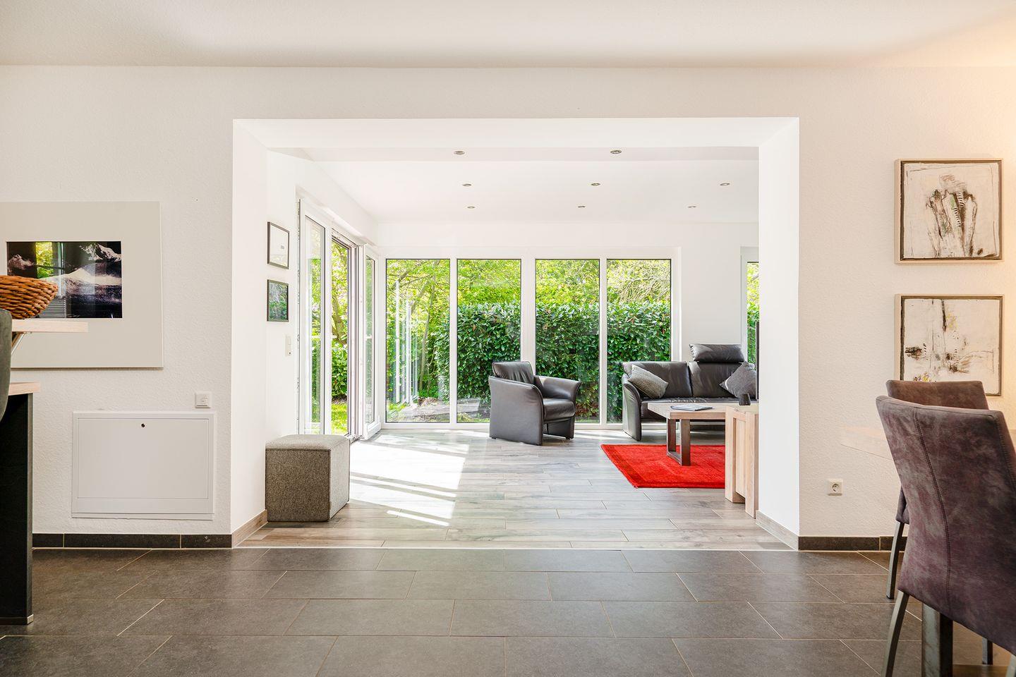 Der ebenfalls neu entstandene Wintergarten mit Fußbodenheizung ist ansprechend modern eingerichtet und gibt auch im Winter eine angenehme Wärme.