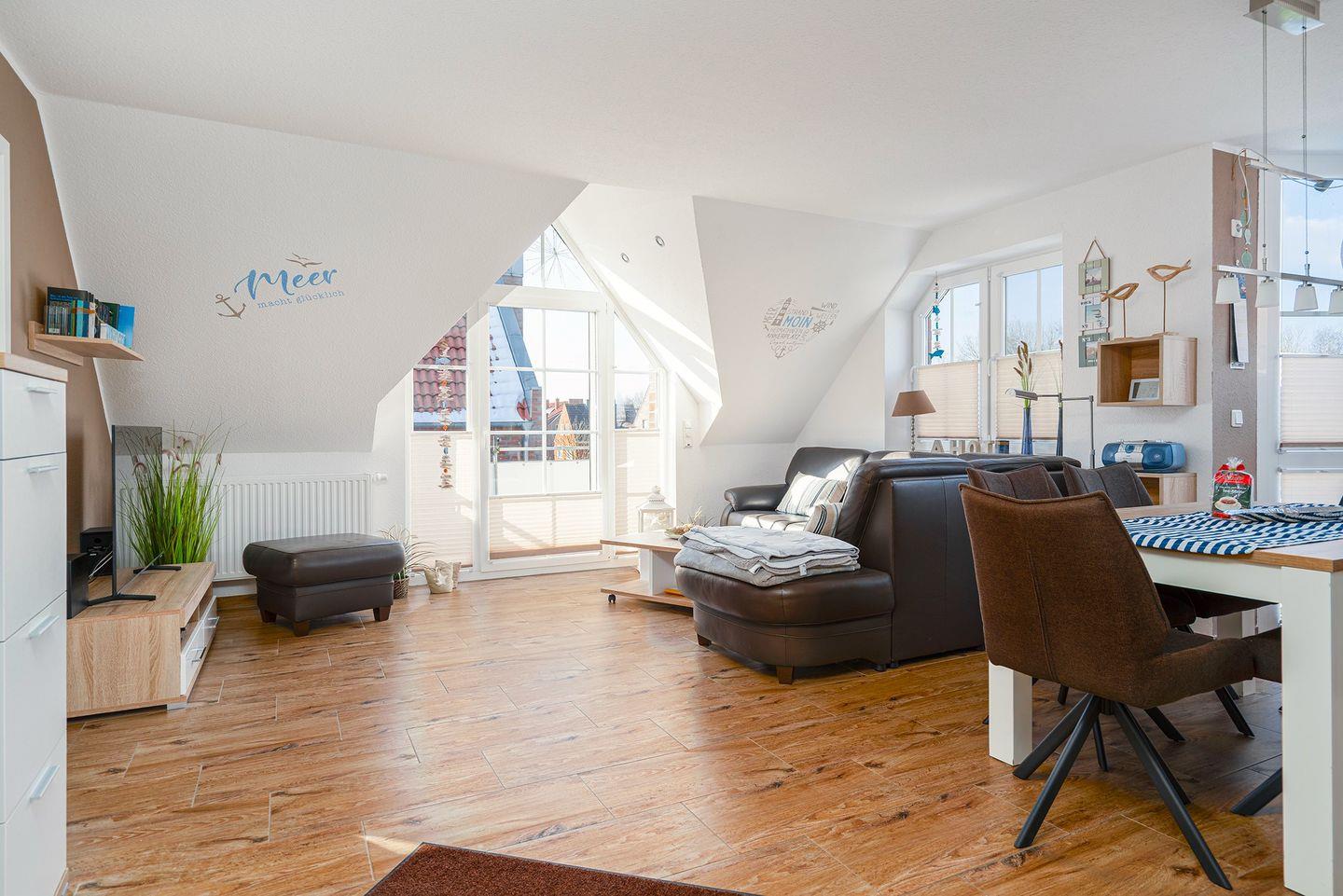 Gemütliche 80qm Ferienwohnung in Greetsiel mit Balkon, Fußbodenheizung und Nähe zu Hafen und Zwillingsmühlen.