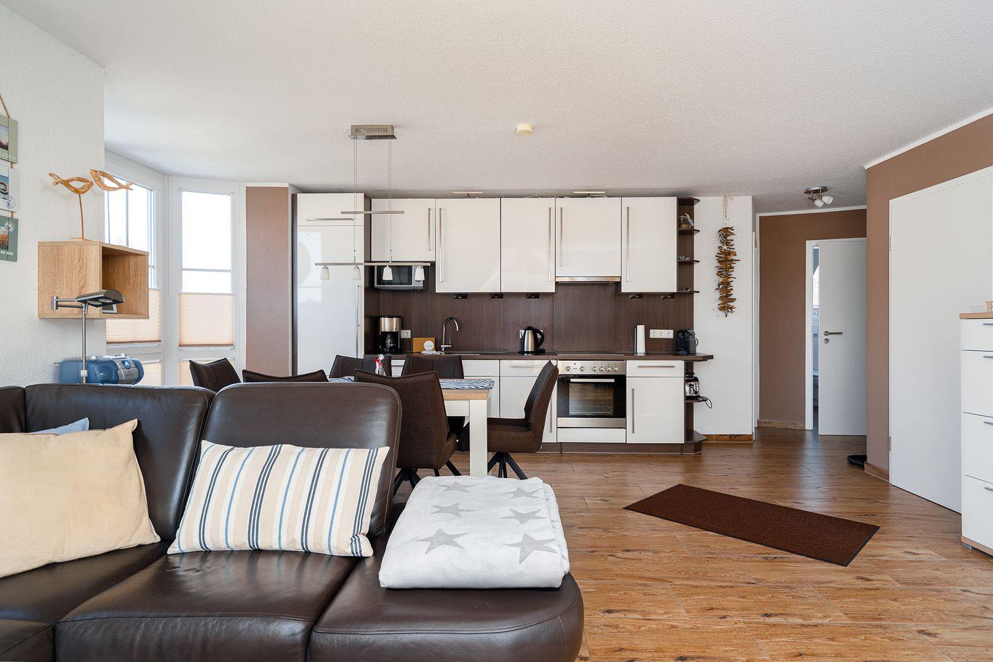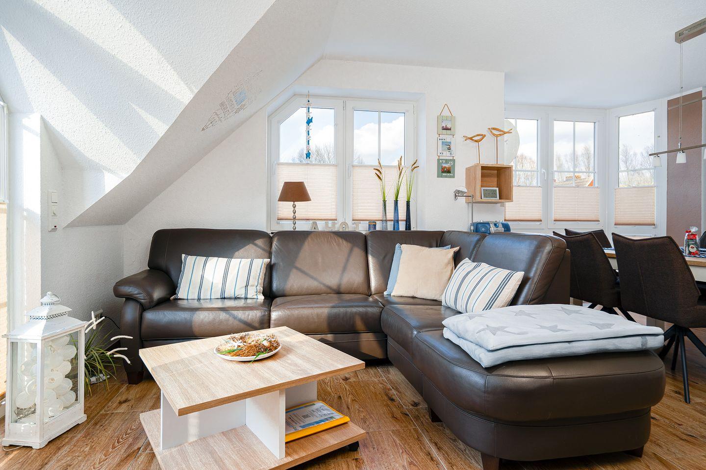 Im lichtdurchfluteten Wohn-Essbereich erwartet Sie jeglicher Komfort. Bequeme Sitzgruppe, SAT-TV(CI-Modul vorhanden), Musikanlage.