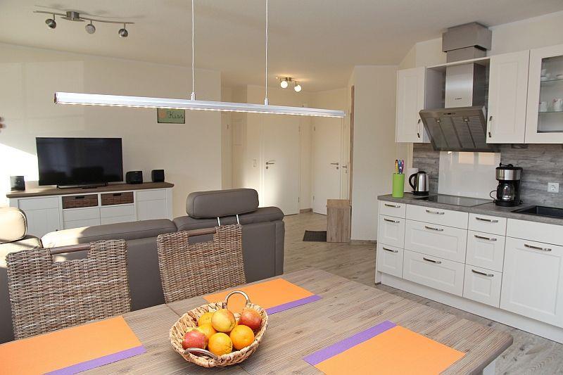 Die komplett geflieste Nichtraucherwohnung verfügt über einen schicken Wohn-/Essbereich mit Flachbild-TV. Im Wohn- Essbereich und im Bad gibt es eine angenehme Fußbodenerwärmung. In allen Räumen befinden sich Fliegengitter.