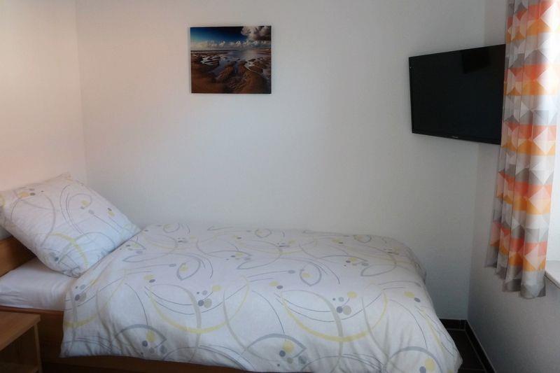 2 Schlafräume (1 x Doppelbett 2,00m x 1,60m (getrennte Matratzen))und 2 Einzelbetten 2,00m x 0,90m) alle mit einer Komforthöhe, ein Schlafraum mit weiterem Sat-TV. Dusche (barrierefrei und mit festem Sitz)/WC und Waschmaschine/- Trockner, Fön und Handtuchtrockner gehören zur gehobenen Ausstattung.