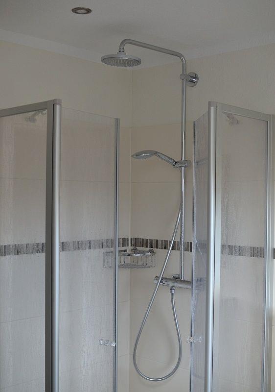 Das Tageslicht-Duschbad mit Wellness Regendusche (bodentief) ist mit WC, Waschmaschine und einem Föhn ausgestattet. Ein Bügeleisen, ein Bügelbrett, ein Wäscheständer befinden sich ebenfalls in der Wohnung.