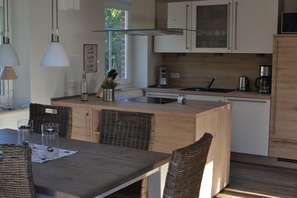 In der offenen Küche mit moderner Kochinsel können Sie Ihre Lieblingsgerichte zubereiten. Hier finden sie alles, was Sie dafür benötigen: Wasserkocher, Toaster, Spülmaschine, Mikrowelle, Backofen und einen Kühlschrank mit Gefrierfach. Für alle Kaffeetrinker steht eine Kaffeemaschine und eine Kaffeepadmaschine von Senseo bereit.