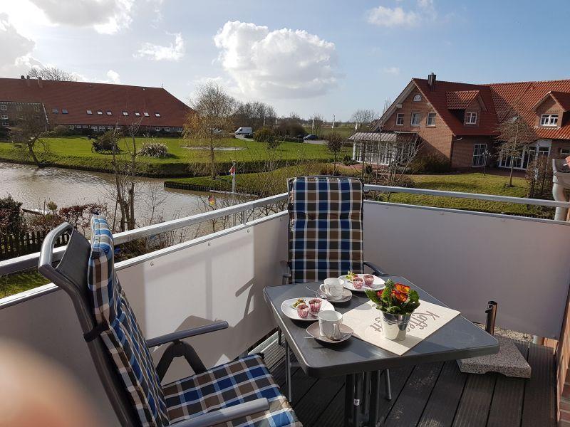 Genießen Sie 85qm Komfort mit Kamin, Wärmekabine und Balkon direkt am Wasser in Greetsiel.