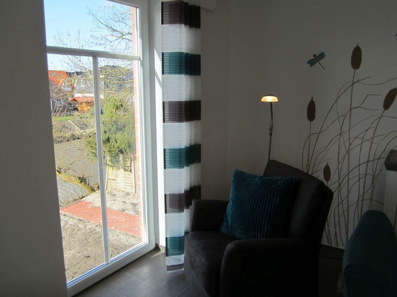Sie residieren mit einem herrlichen Weitblick vom Südbalkon über die Nachbargärten und das „neue Greetsieler Sieltief“. Die Wohnung ist allergikerfreundlich eingerichtet, der Fußbodenbelag besteht aus Fliesen, im Dachgeschoss ist Laminat verlegt.