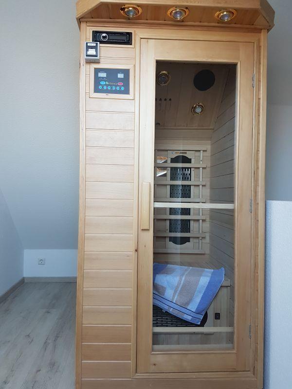 Im Dachgeschoss finden Sie eine Infrarotwärmekabine, die Sie während Ihres Aufenthalts kostenlos nutzen können. Sie bietet die Möglichkeit der zusätzlichen Farblichttherapie. Mit dem eingebauten Radio/CD-Spieler können Sie mit entspannender Musik die erholsame Wirkung genießen.