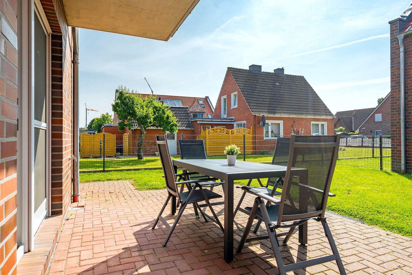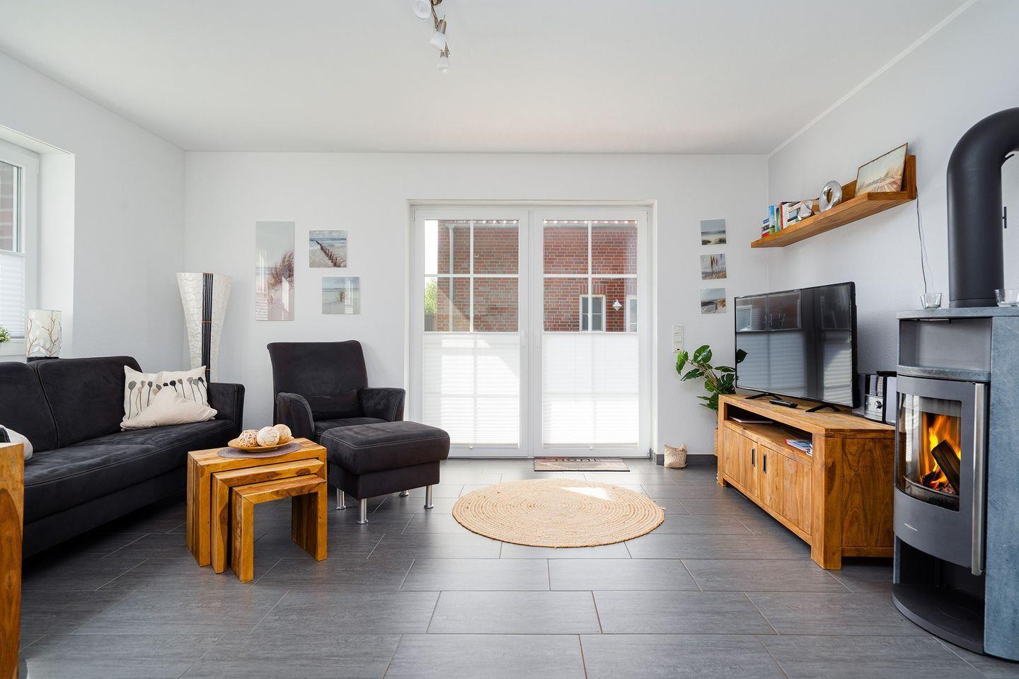 Moderne Ferienwohnung in Greetsiel mit Terrasse, Kamin und Nähe zu Hafen und Zwillingsmühlen.