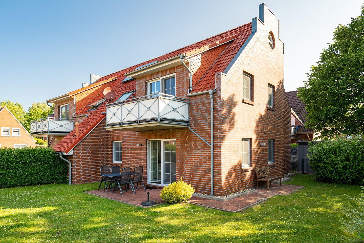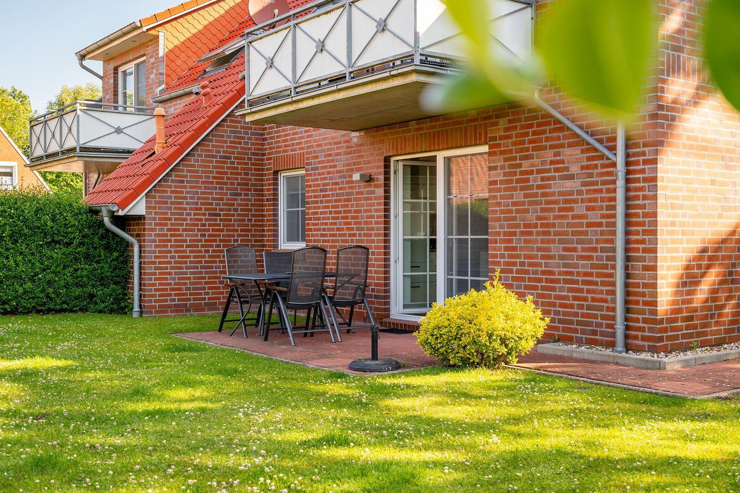 Gemütliche Nichtraucher-Ferienwohnung mit großem Garten und zwei Terrassen in Greetsiel, ideal für Familien und Hundebesitzer.