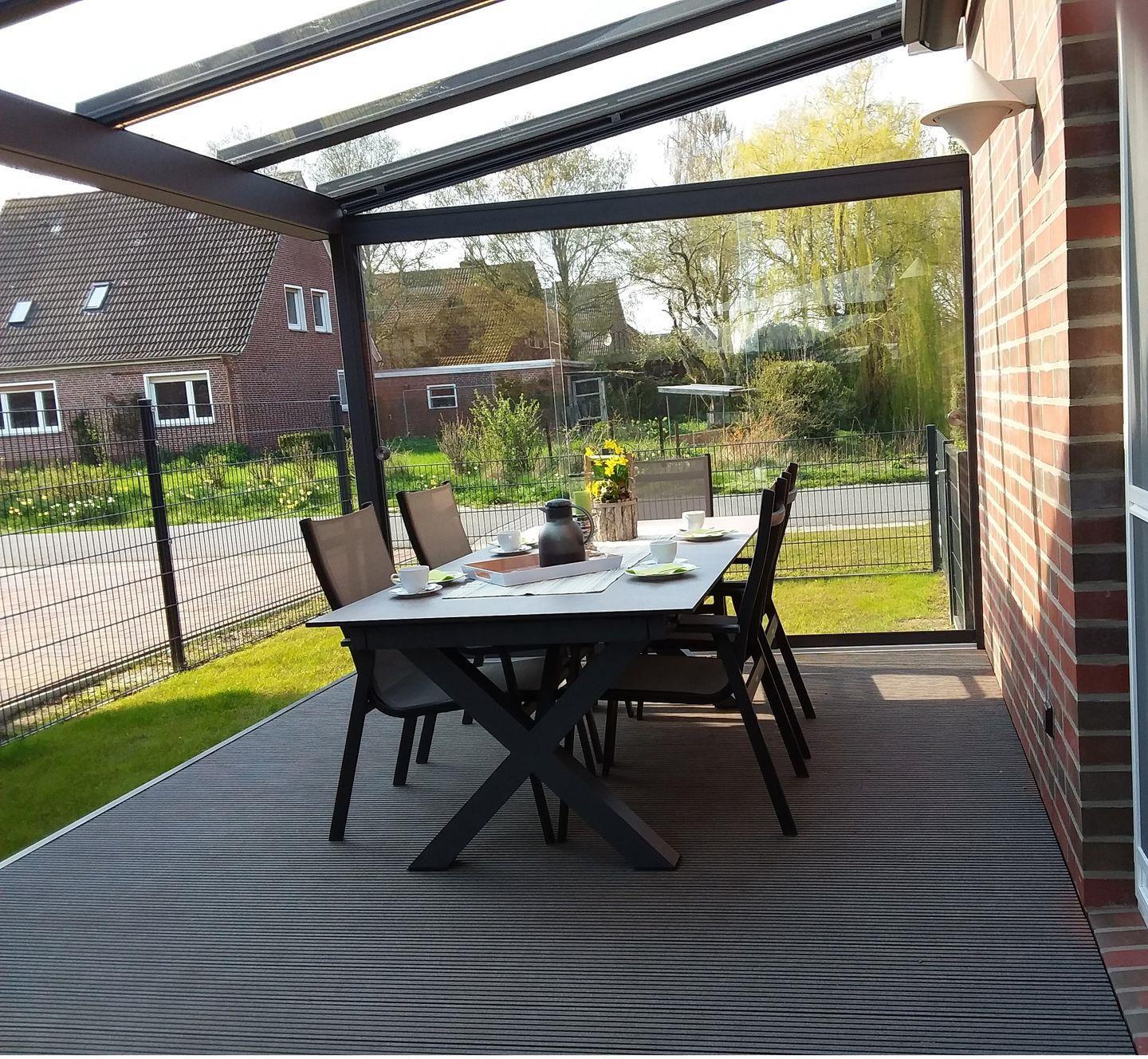 Der komplett eingezäunte Garten lädt mit einer überdachter Terrasse mit Seitenwänden und elektr. Sonnenschutz nicht nur für die Sommerzeit, sondern auch im Frühjahr und Herbst zum 'Teetrinken' und entspannen ein.